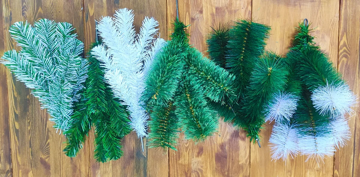 Варианты хвои: литые ветки, ветки из пленки пвх, ветки из лески. Крепление веток: вставные ветки и ветки на крючке.