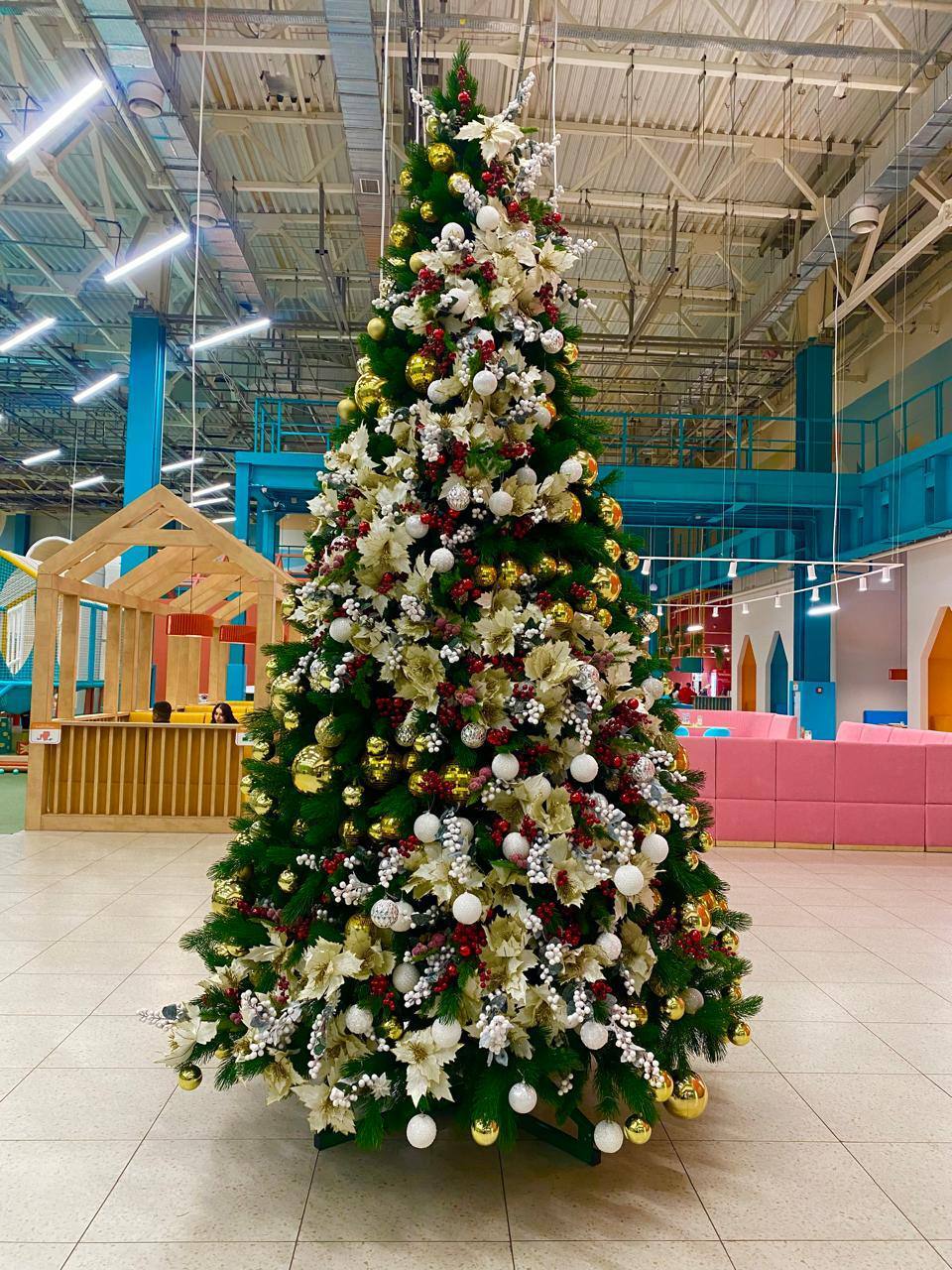 Большая искусственная елка «Каспийская».  Конструкция позволяет безопасное эксплуатирование как в закрытых помещениях так и на улице.