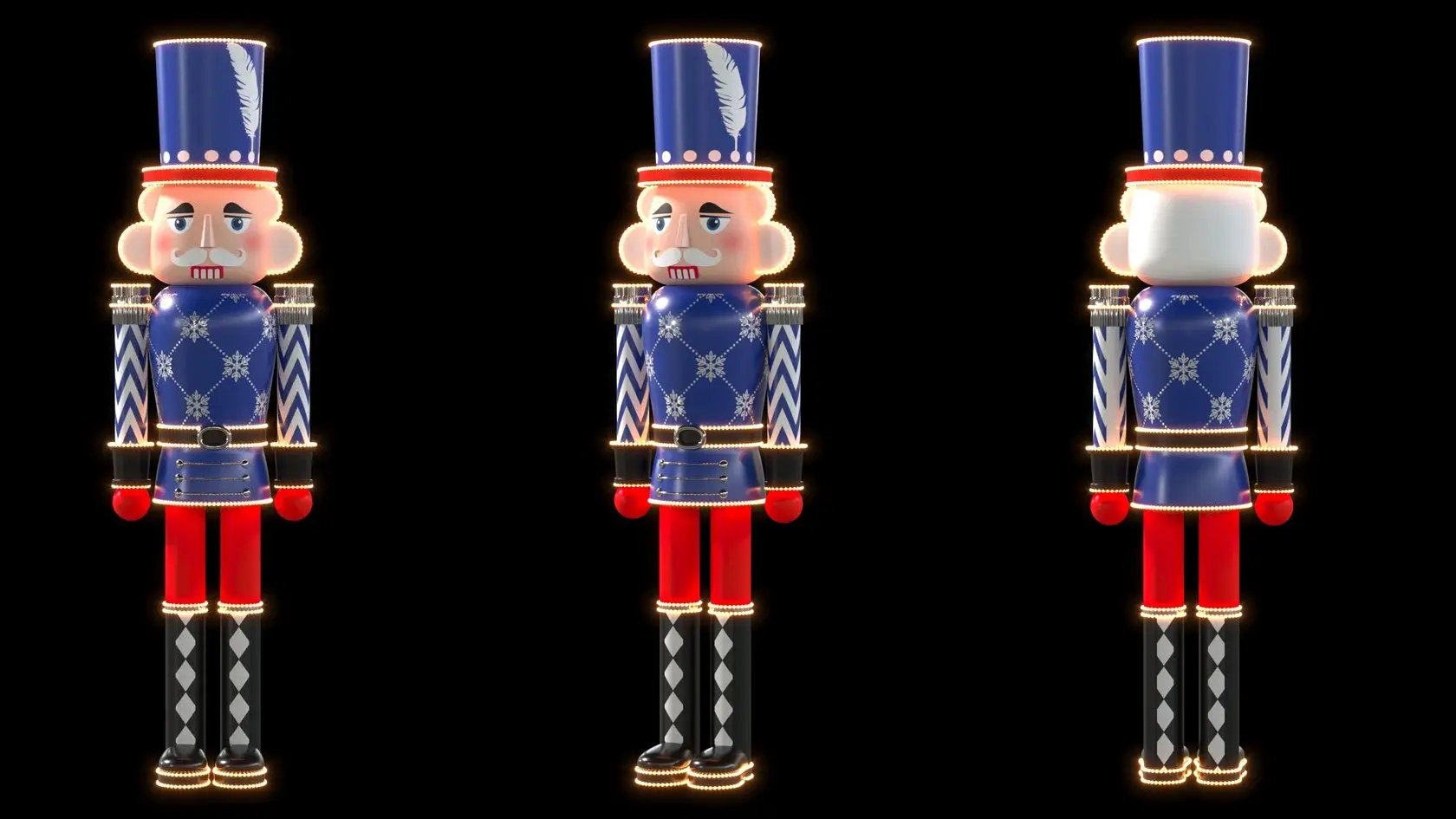 большая фигура "Щелкунчик" в синем мундире со снежинками