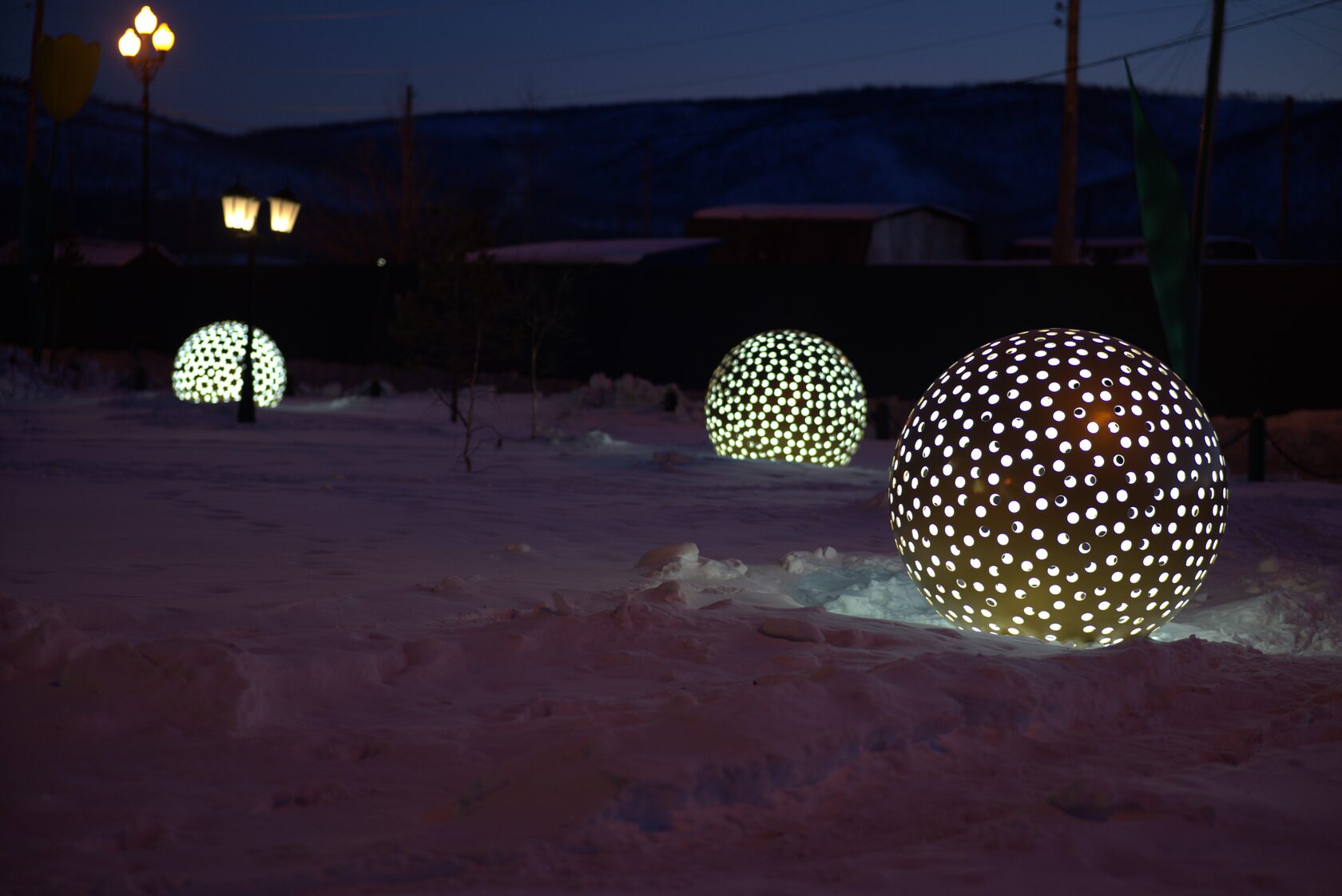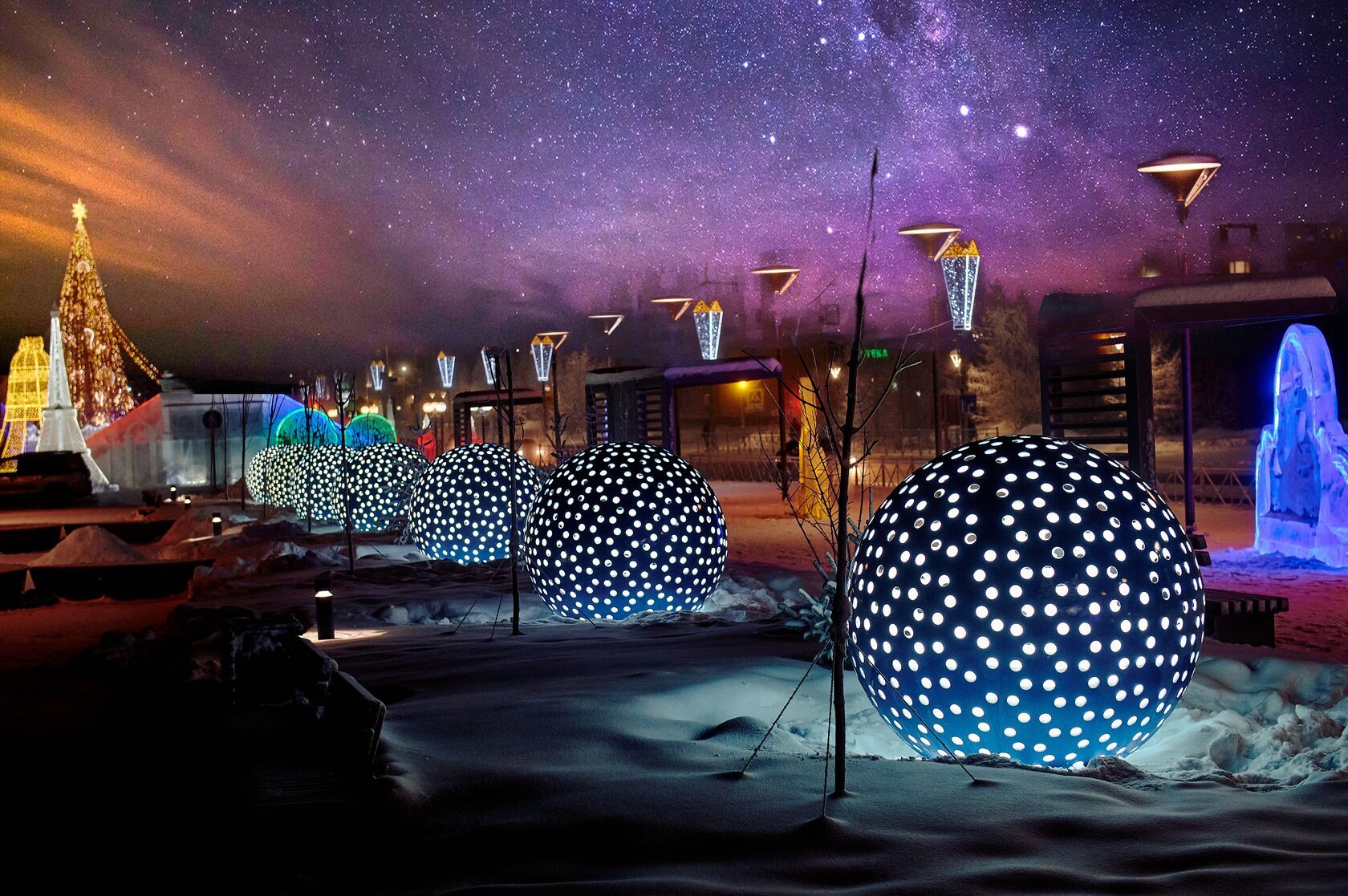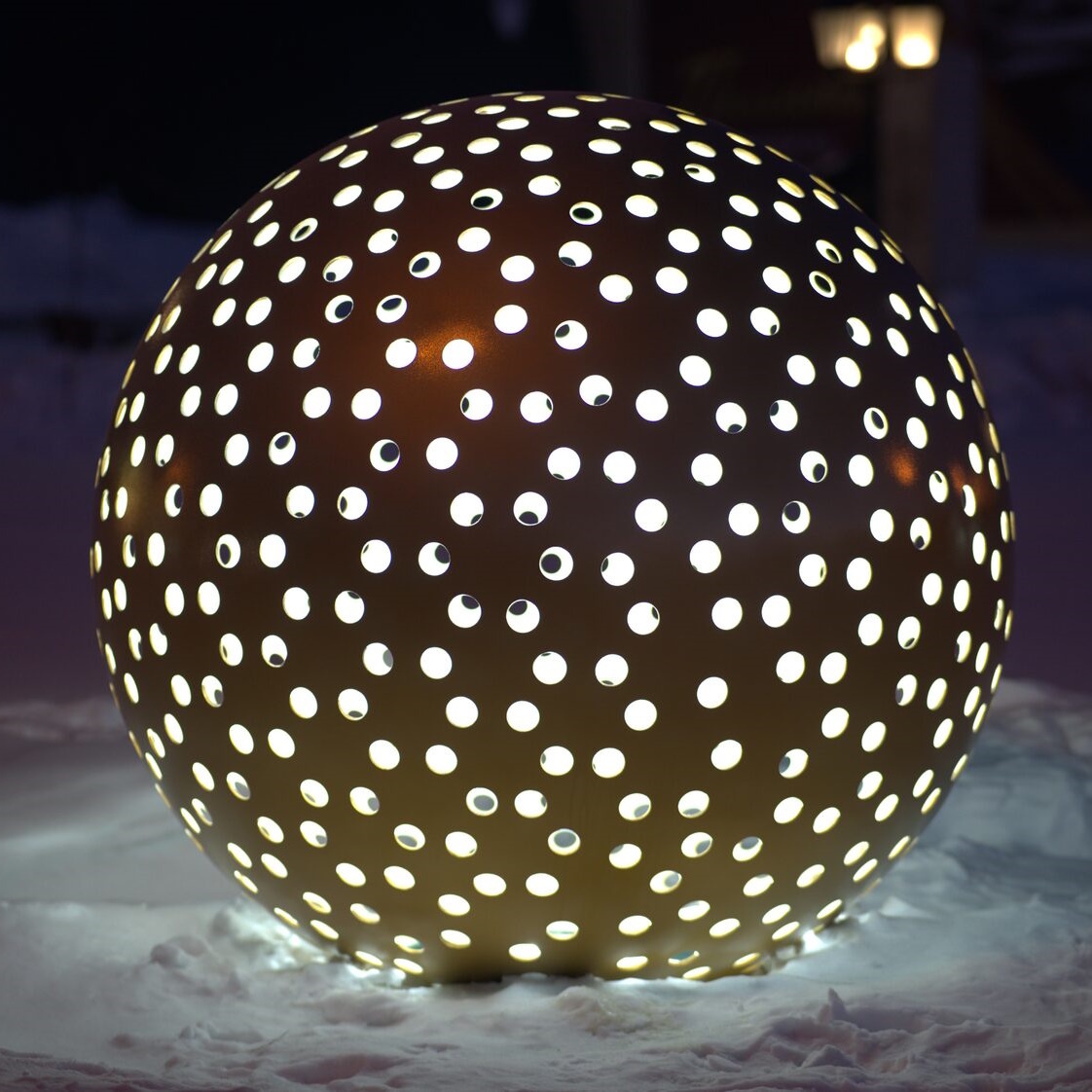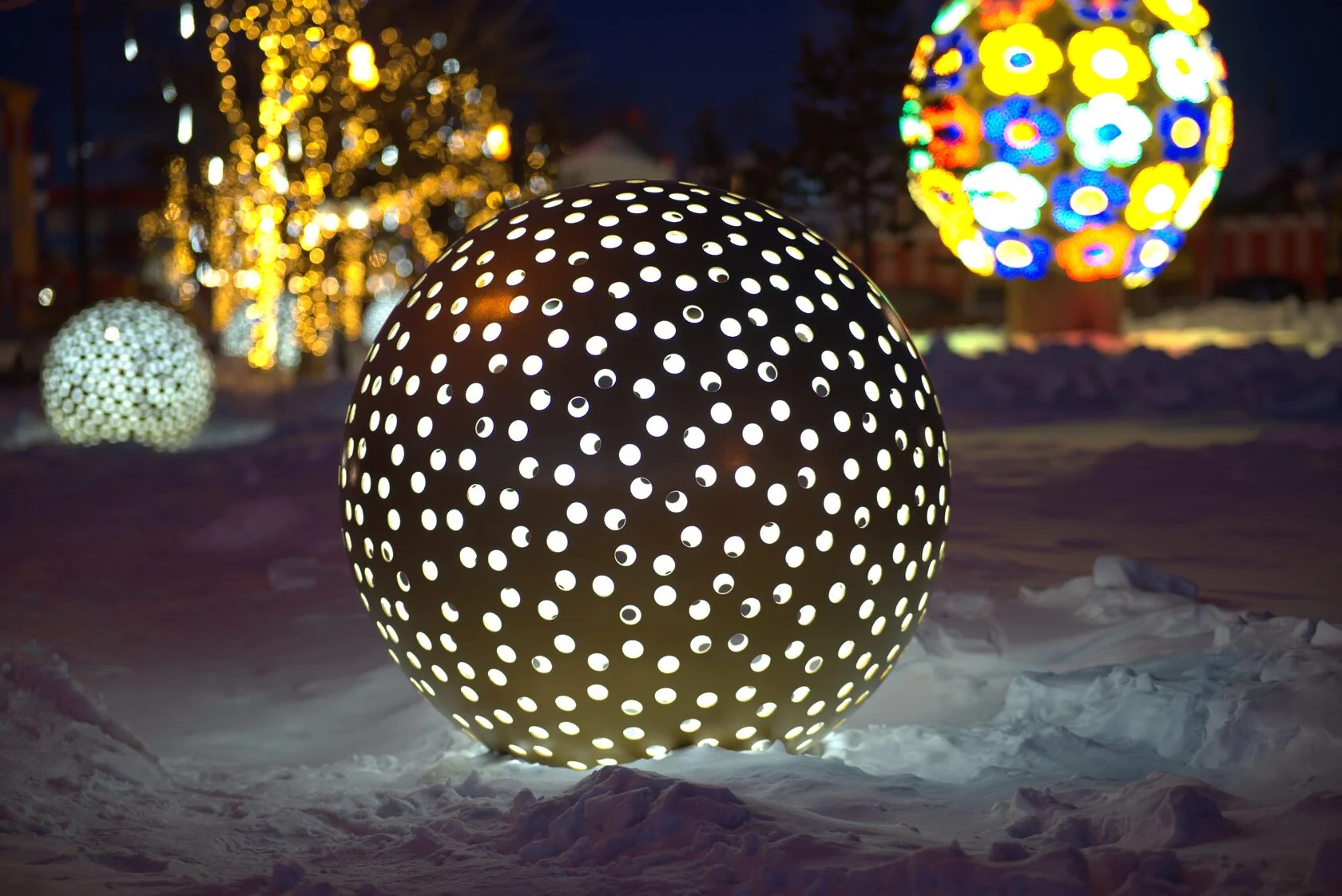 Большие новогодние шары из стеклопластика используются для установки на улице в любых климатических условиях и притягивают взгляды людей. Диапазон температур эксплуатации изделия в пределах (от -60 до +60°C).