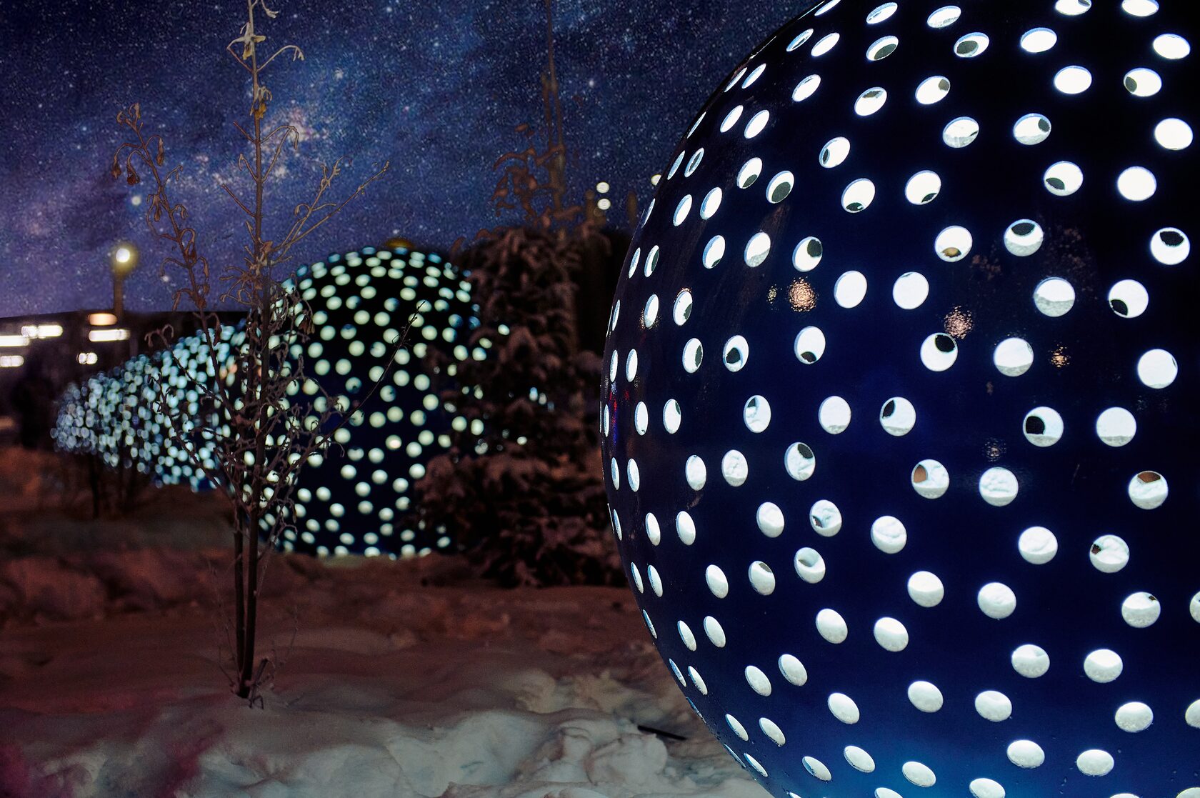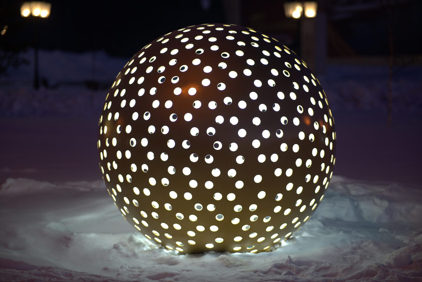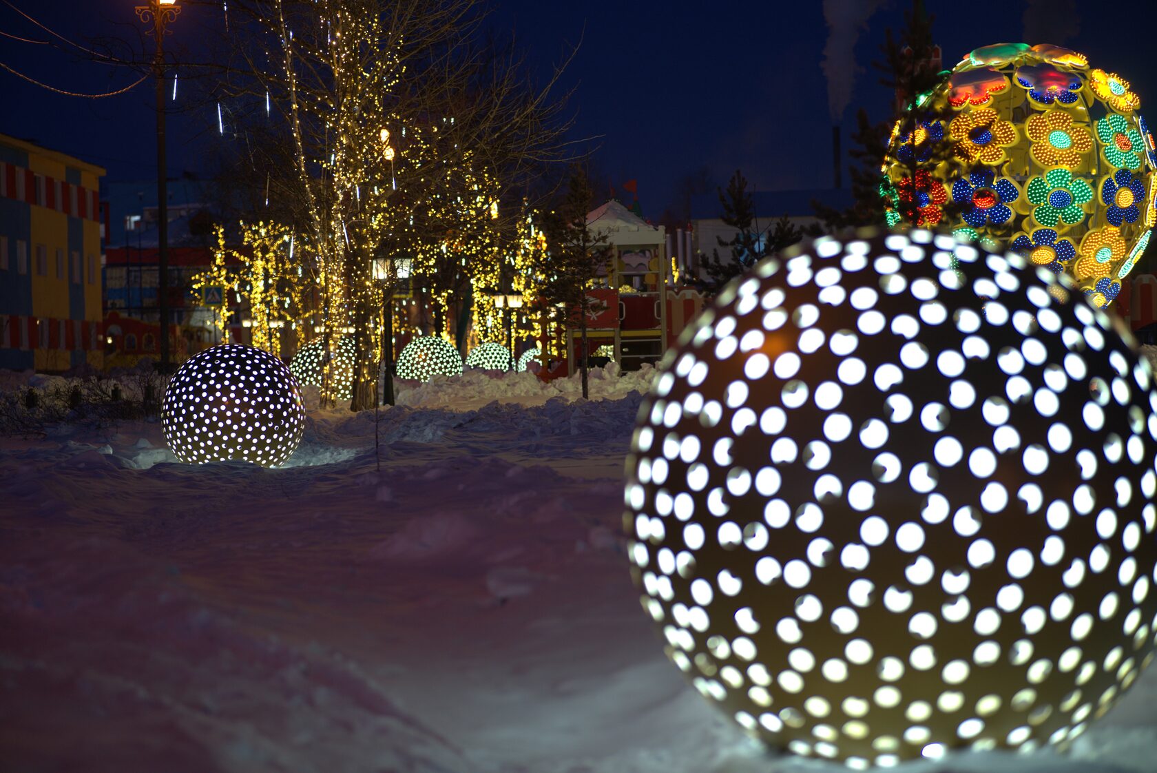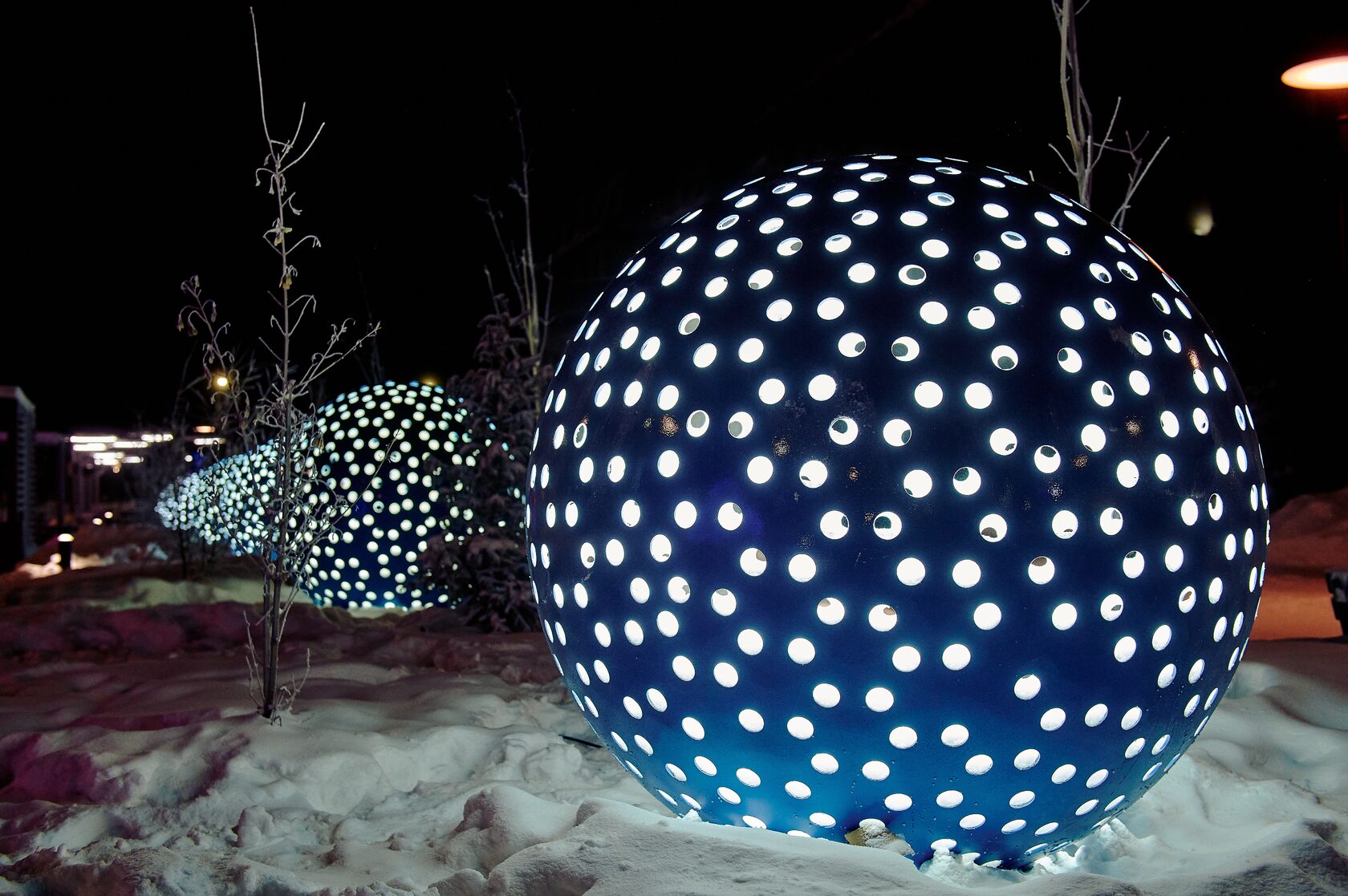 Большие новогодние шары из стеклопластика используются для установки на улице в любых климатических условиях и притягивают взгляды людей. Диапазон температур эксплуатации изделия в пределах (от -60 до +60°C).