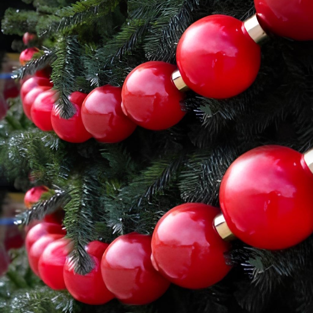 Уличные огромные бусы больших размеров или Бусы гиганты, созданы для большой или уличной елки. Являются новогодним украшением для городской елки, для елки в школе, в детском саду, в институте, в офисе, в холле гостиницы, как в помещении, так и на улице.