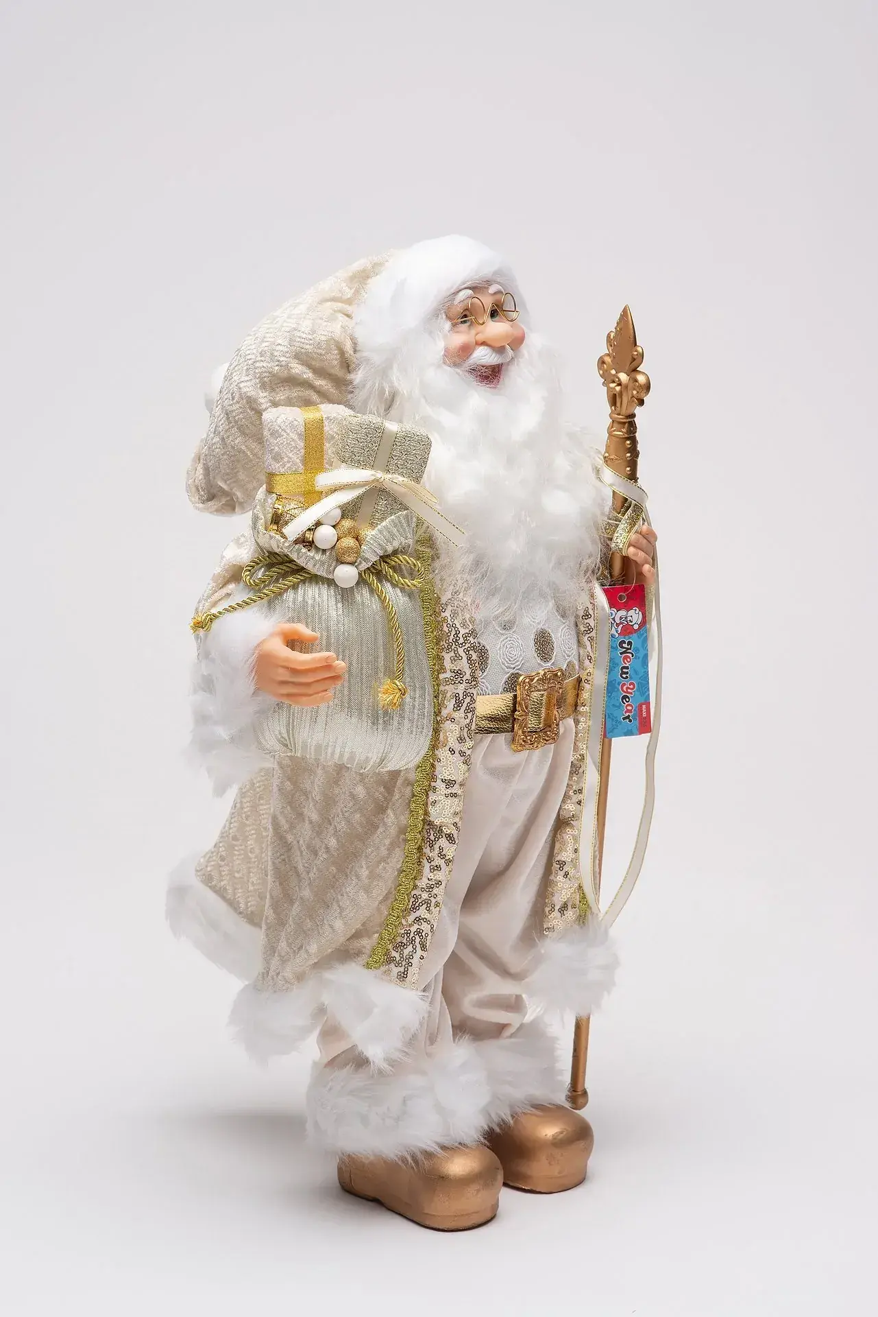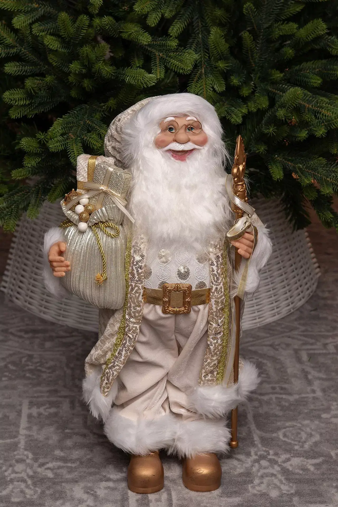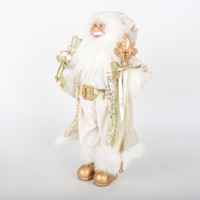 Игрушка «Королевский» Дед Мороз в золотом наряде выглядит очень богато и наверняка придется по душе вашему хорошему другу или родственнику. И Дети, и взрослые, увидев эту игрушку, придут в восторг. А если вы поставите его под ёлку белого или зеленого цвета, ваше жилище заметно преобразится.