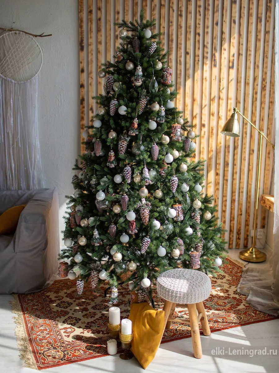 Искусственная новогодняя елка "Брено" российского производства изготовлена из литой хвои разных оттенков зеленого цвета. Литые ветки со светлыми кончиками имитируют молодые побеги и с высокой точностью повторяют контуры веток натуральной ели. Ель имеет шарнирное крепление веток и металлическую устойчивую подставку. Елка легко и быстро собирается и разбирается.