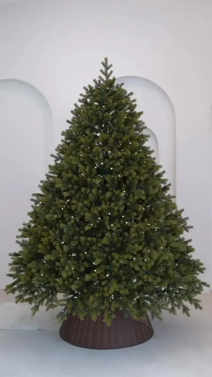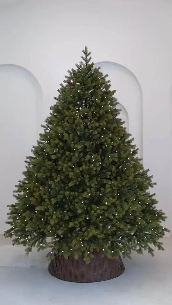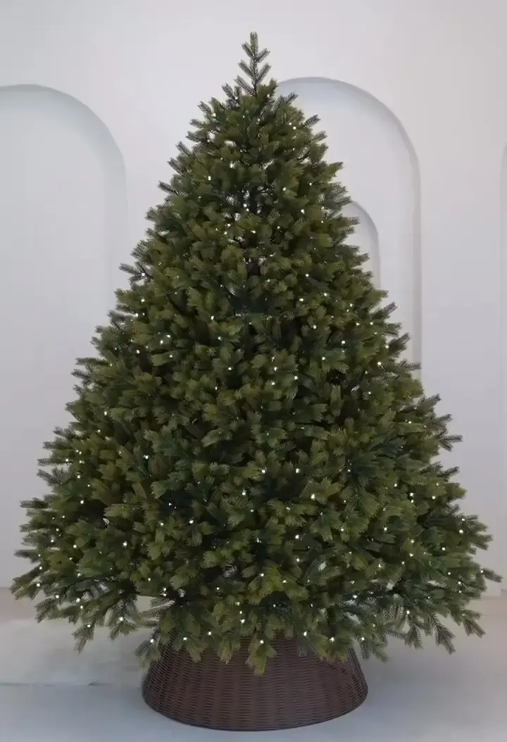 Литая елка с гирляндой "Эрмитажная". Каждая веточка выполнена из 100% литой хвои. Шикарная ель. Гирлянда теплого свечения с повышенным количеством диодов с 10 режимами мерцания. Диоды в виде капелек, так густо усыпаны, что ель сверкает как бриллиант. Надежная металлическая подставка. Елка поставляется в прочной коробке, которая послужит местом для хранения внесезонное время. Елка вам прослужит долгие годы, она абсолютно безопасна, что подтверждают сертификаты качества.