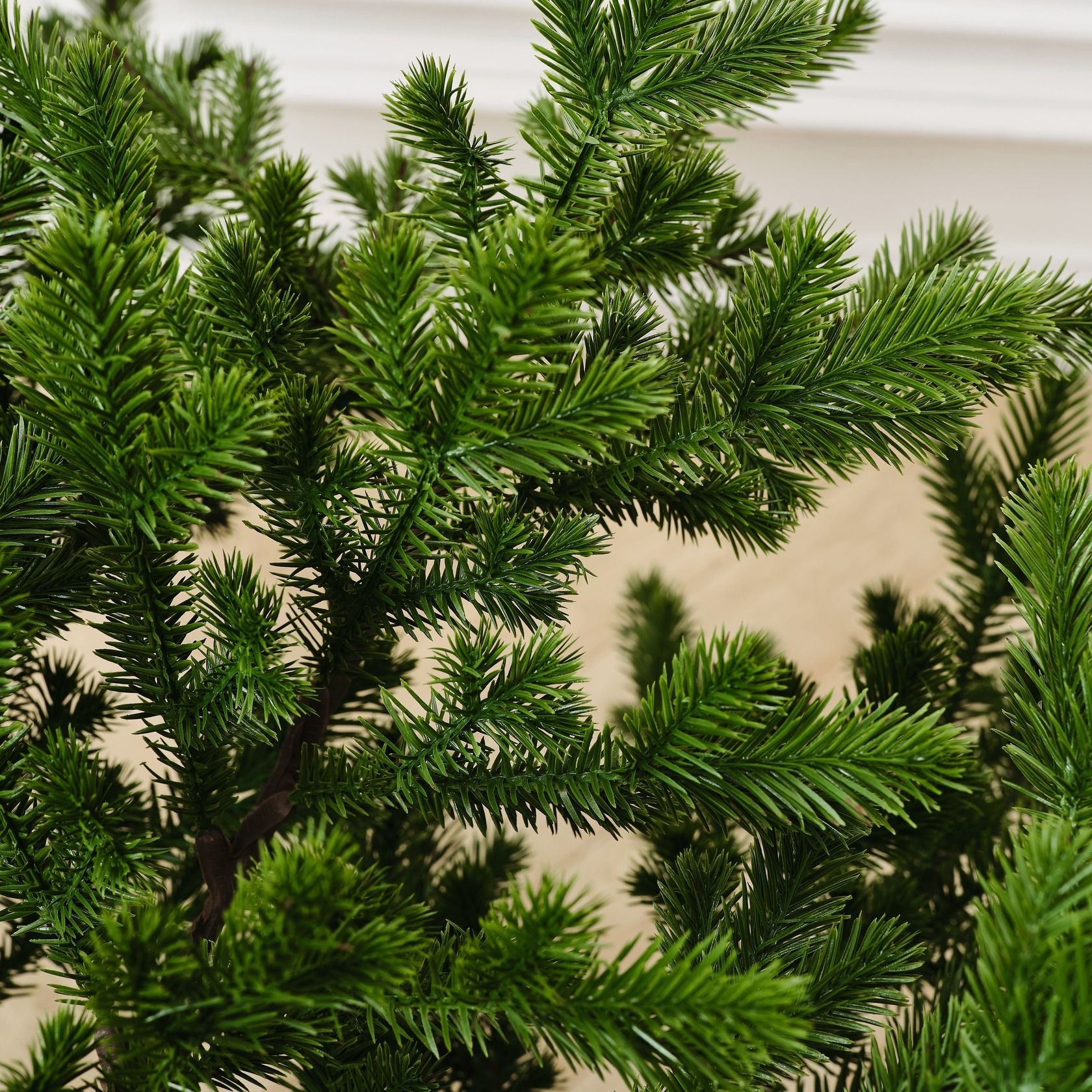 Meribel отличается экологически чистыми материалами, которые безопасны для детей и домашних животных. Искусственная ёлка не поддерживает горение, не имеет запаха и идеально подходит для помещений, создавая безопасную атмосферу для всех членов семьи. Зелёный цвет ёлки выполнен с переходом к натуральному оттенку, который придаёт веточкам свежий и натуральный вид.