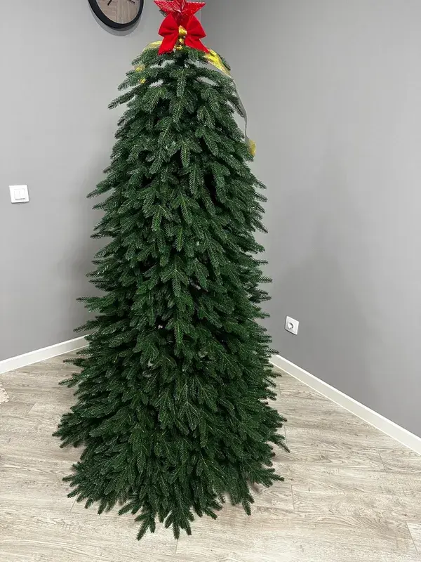 Искусственная елка «Моника» - статная узкая ель, которая идеально подойдет для оформления детской комнаты или малогабаритной квартиры. Плотные густые ветви, опущенные вниз и скрывающие металлическую подставку-крестовину придают дереву особенный шарм и элегантность.
