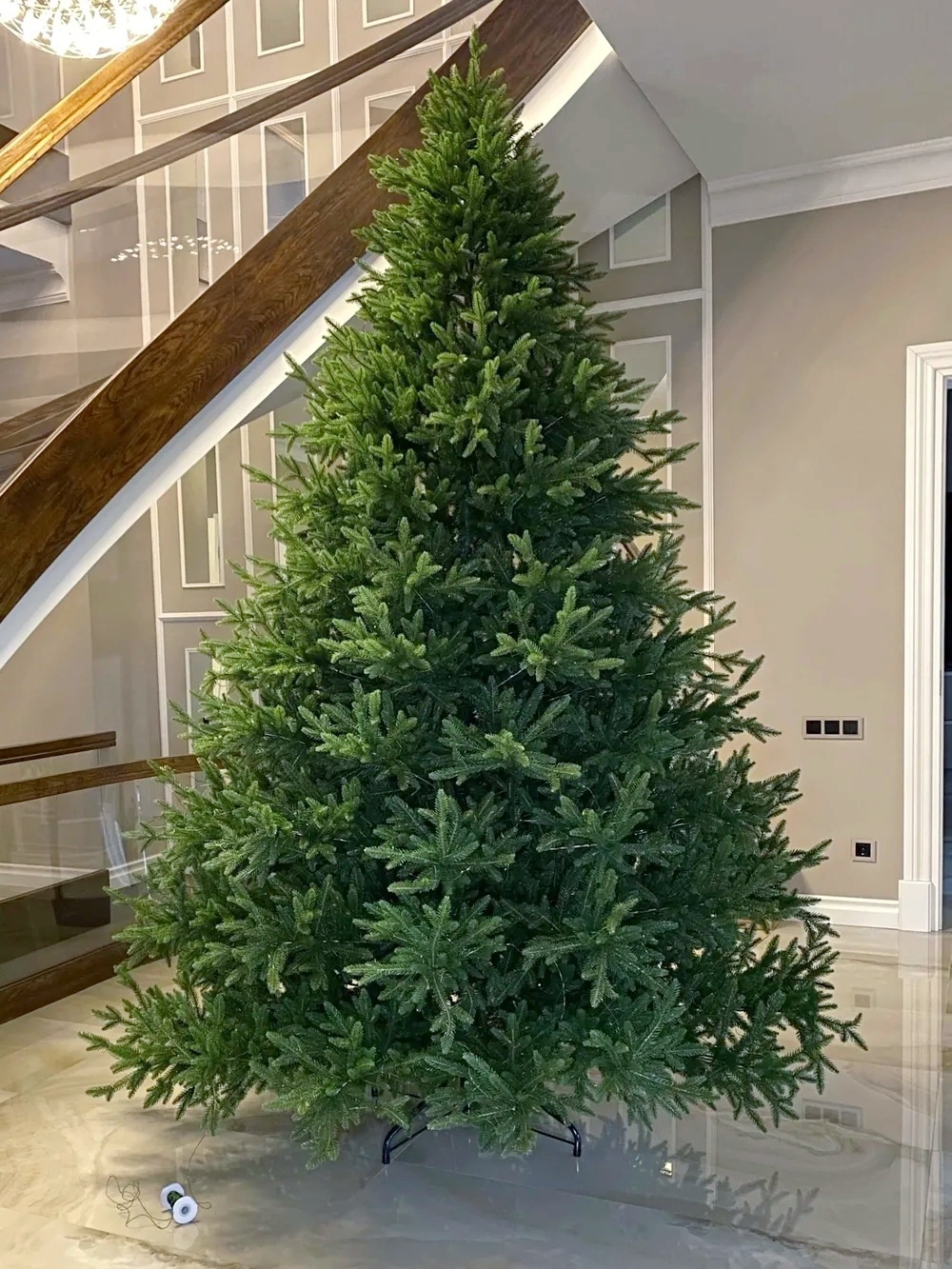 Конструкция дерева – металлический стержень, полимерные хвойные лапы и металлическая крестовина, позволяют быстро установить и нарядить дерево. Несмотря на внушительные объемы, елочка очень устойчива, проста в установке, безопасна при использовании, потому что не представляет угрозы для здоровья, не горит, не пахнет