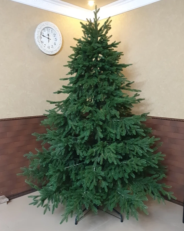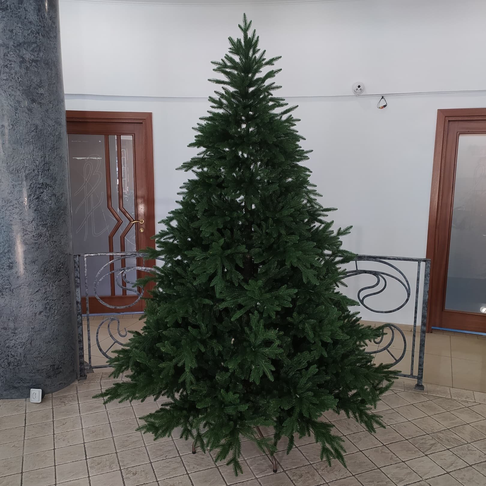 Конструкция дерева – металлический стержень, полимерные хвойные лапы и металлическая крестовина, позволяют быстро установить и нарядить дерево. Несмотря на внушительные объемы, елочка очень устойчива, проста в установке, безопасна при использовании, потому что не представляет угрозы для здоровья, не горит, не пахнет