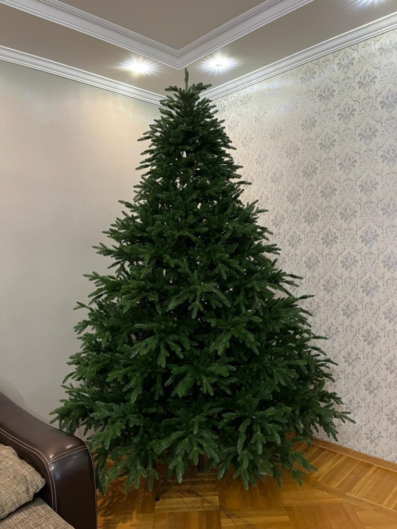 Конструкция дерева – металлический стержень, полимерные хвойные лапы и металлическая крестовина, позволяют быстро установить и нарядить дерево. Несмотря на внушительные объемы, елочка очень устойчива, проста в установке, безопасна при использовании, потому что не представляет угрозы для здоровья, не горит, не пахнет