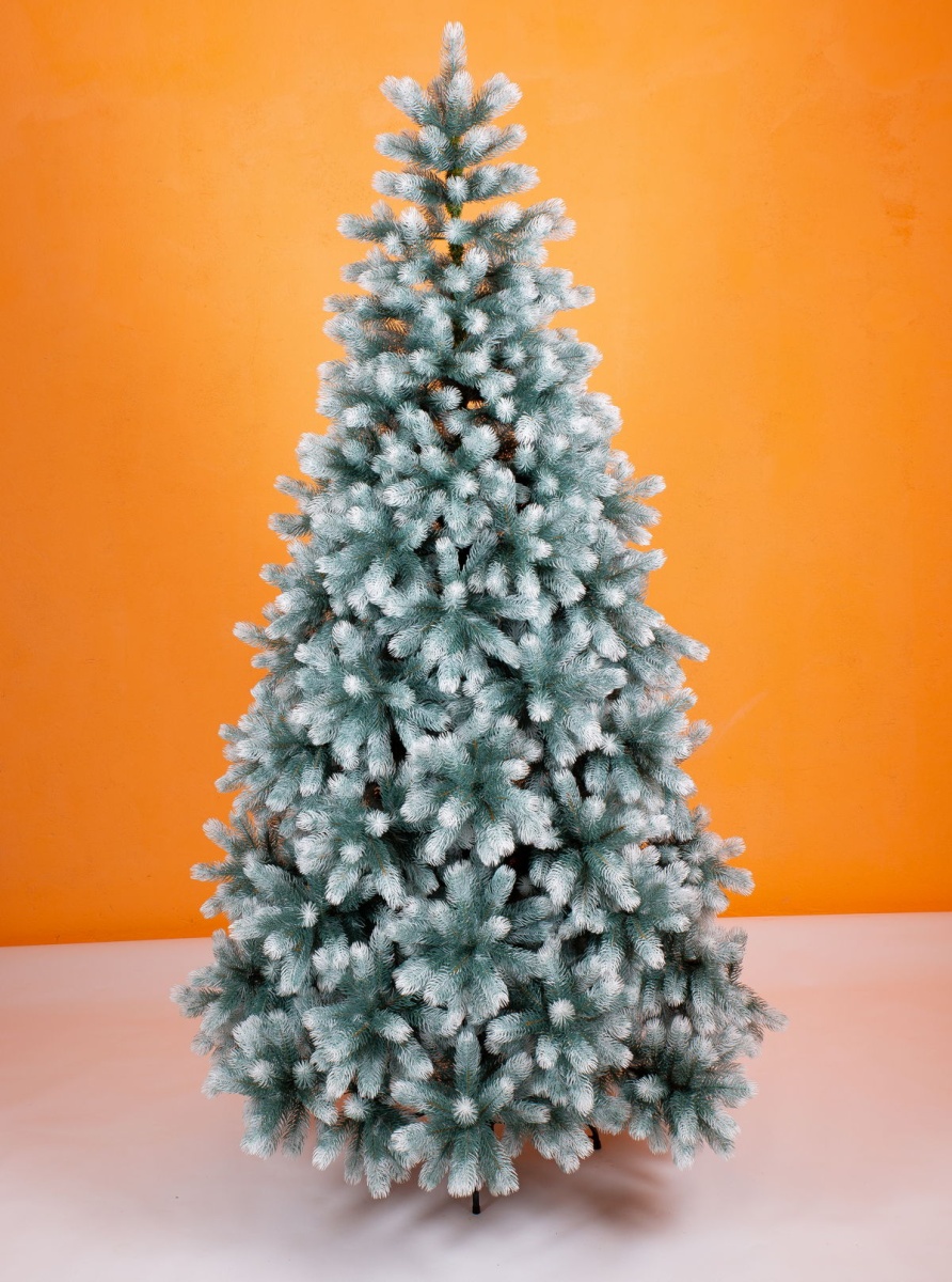 Искусственная ель «Русская императрица голубая с белыми кончиками» В данной модели еловые лапы с длинными голубыми иглами. Особую привлекательность дереву придают белые кончики хвои, которые имитируют припорошенность снегом. Ель примечательная своими формами и пропорциями, красивым узором, который получен благодаря правильному расположению веточек. Умеренной ширины юбка позволяет устанавливать ель даже в не очень больших помещениях. Устойчивость ели обеспечивает металлический остов и металлическая опора.