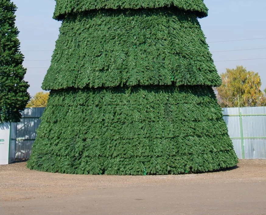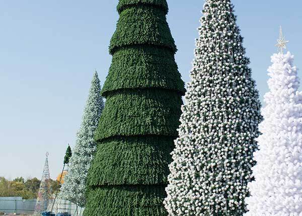 Уличная Сегментная елка - это елка каркасной конструкции, состоящая из сегментов разного диаметра. В готовом виде сегментная ель выглядит как многоярусная конусная конструкция, в которой каждый выше расположенный ярус меньше нижнего. Каркас изготовлен из прочного металла и устойчив к порывам ветра и непогоде. Основание елки покрыто ветками, поэтому елка может устанавливаться без ограждения.