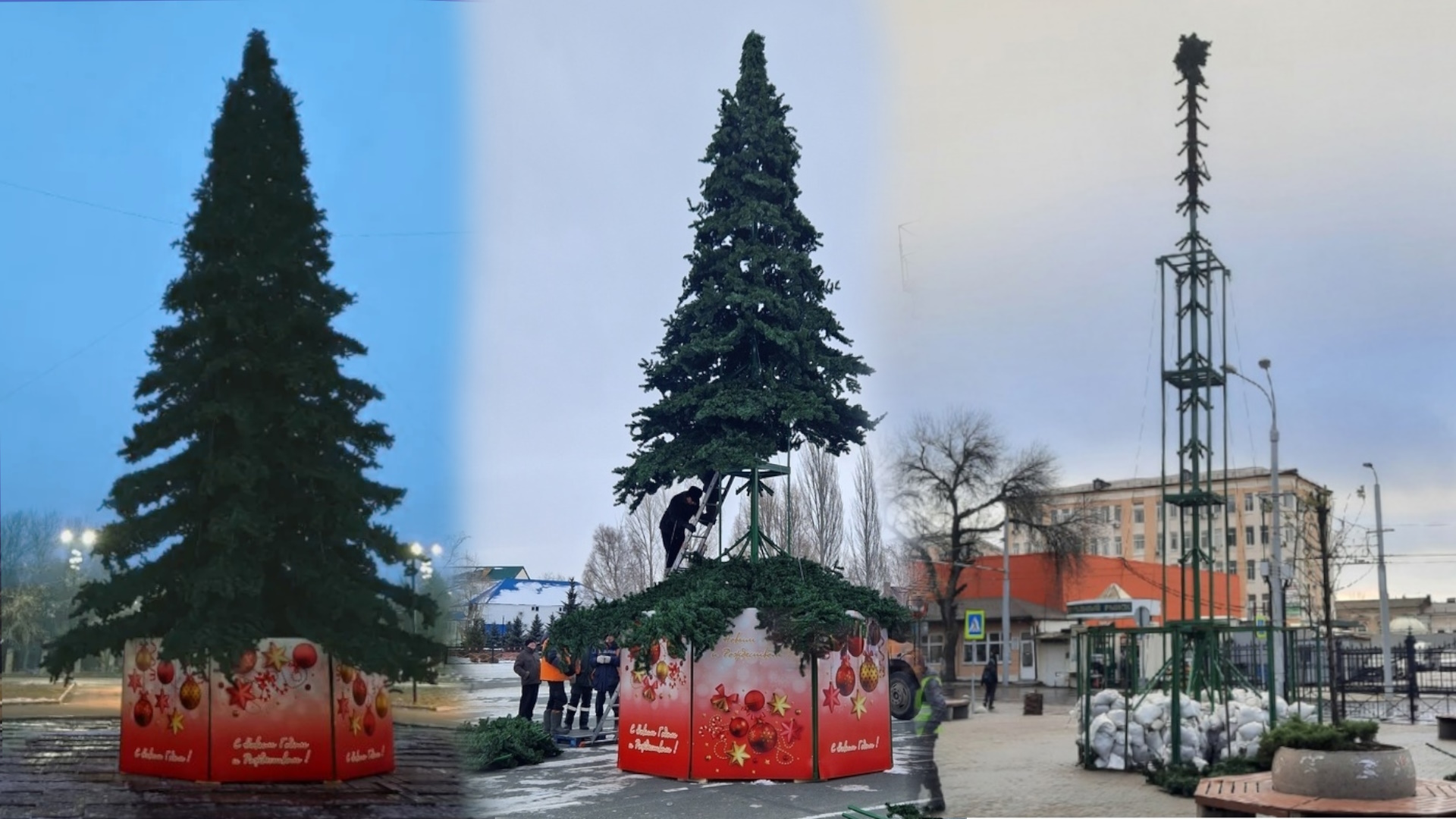 Каркас: Представляет собой сборно-разборную конструкцию. Каркас окрашен порошковой краской зелёного цвета. Металлическое основание с диагональными ребрами жёсткости, центральный ствол, натяжные тросы, хвойная макушка, ветки с хвоей.