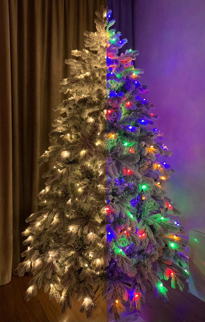 • Встроенная гирлянда с теплым белым и цветным свечением