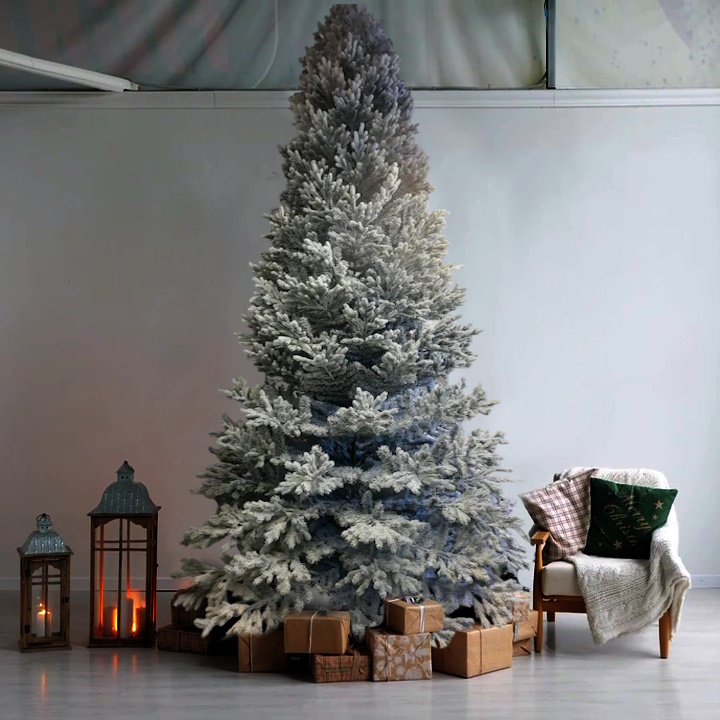 Большая заснеженная елка "Сказочная" - хвоя покрытая снегом делает елку привлекательной, будто елку только что привезли из зимнего леса. Такие елки выглядят очень натурально и элегантно особенно в сочетании с новогодними украшениями. Елка имеет крепкую и прочную конструкцию. Усиленный металлический каркас делают елку очень устойчивой. Предназначена для установки в помещениях, таких как холлы, фойе, актовые залы, торговые центры, а также в частных домах и квартирах с высокими потоками.