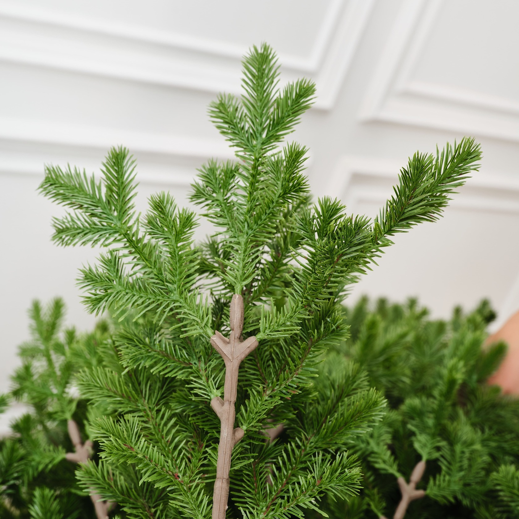 Шарнирное крепление веток обеспечивает легкость сборки: ветви крепятся на шарнирах и расправляются автоматически, стоит лишь установить ёлку вертикально, наподобие раскрытия зонтика. Это значительно упрощает процесс установки, так что ёлка готова к празднику за считанные минуты.