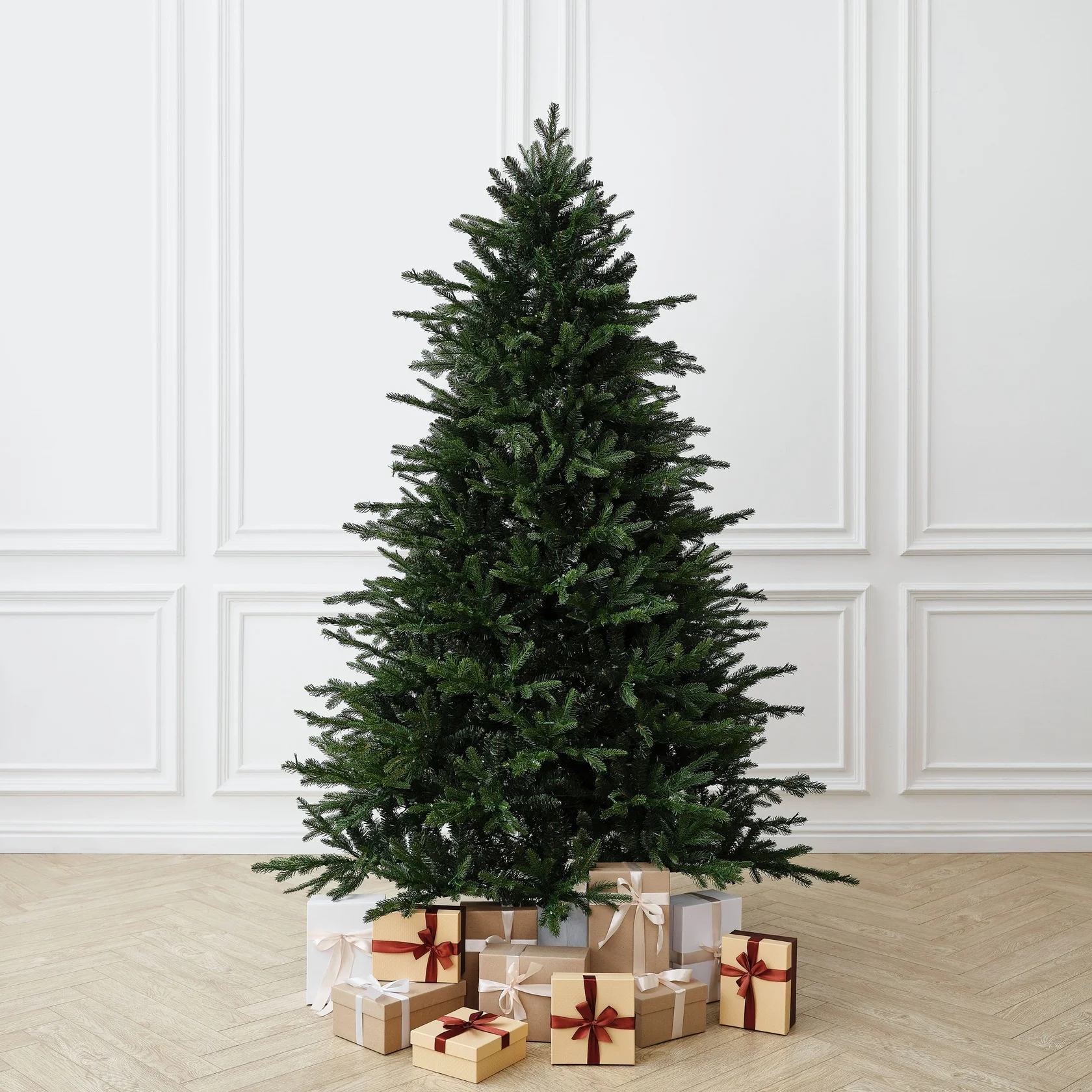 Тёмно-зелёный окрас хвои создает ощущение, что ёлка привезена прямо из леса, придавая интерьеру свежесть. Широкий силуэт напоминает форму дикой ели, что делает её центральным элементом праздничного декора. Тонкие веточки придают ёлке воздушность и позволяют использовать любые украшения.