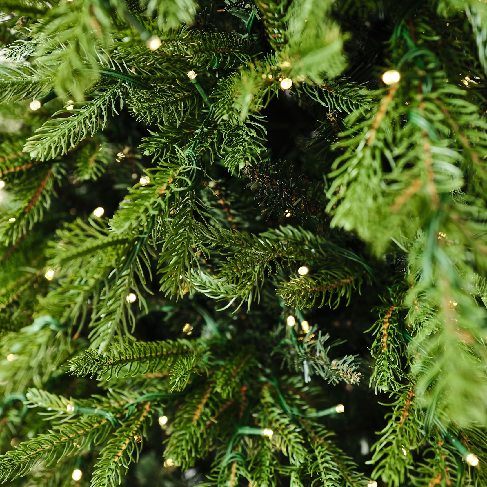 Одной из главных особенностей модели является встроенная LED-подсветка тёплого свечения. Светодиоды заранее закреплены на каждой ветке, создавая уютный и волшебный свет. Гирлянда подключается через специальные коннекторы, что позволяет быстро собрать ёлку.