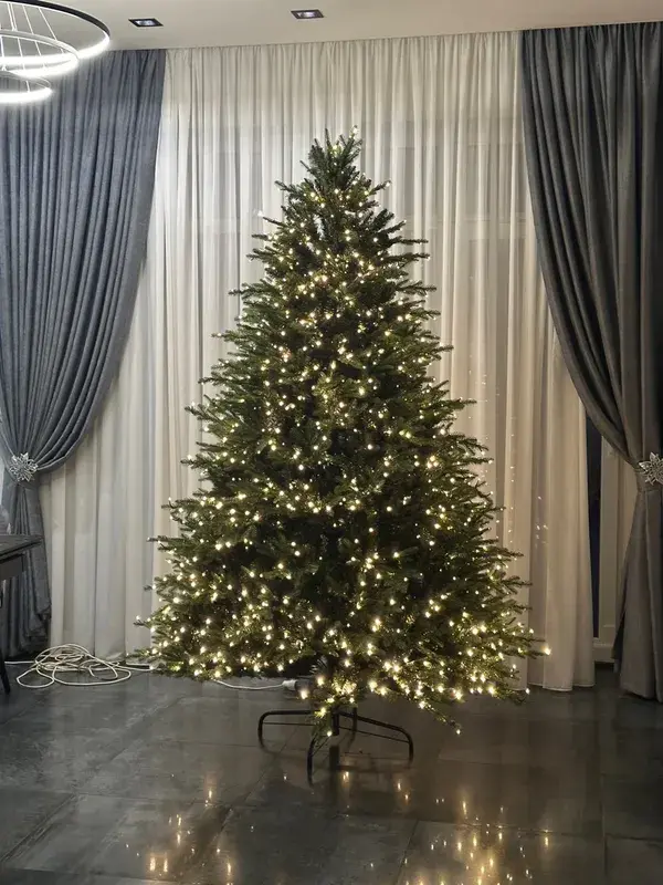 Одной из главных особенностей модели является встроенная LED-подсветка тёплого свечения. Светодиоды заранее закреплены на каждой ветке, создавая уютный и волшебный свет. Гирлянда подключается через специальные коннекторы, что позволяет быстро собрать ёлку.