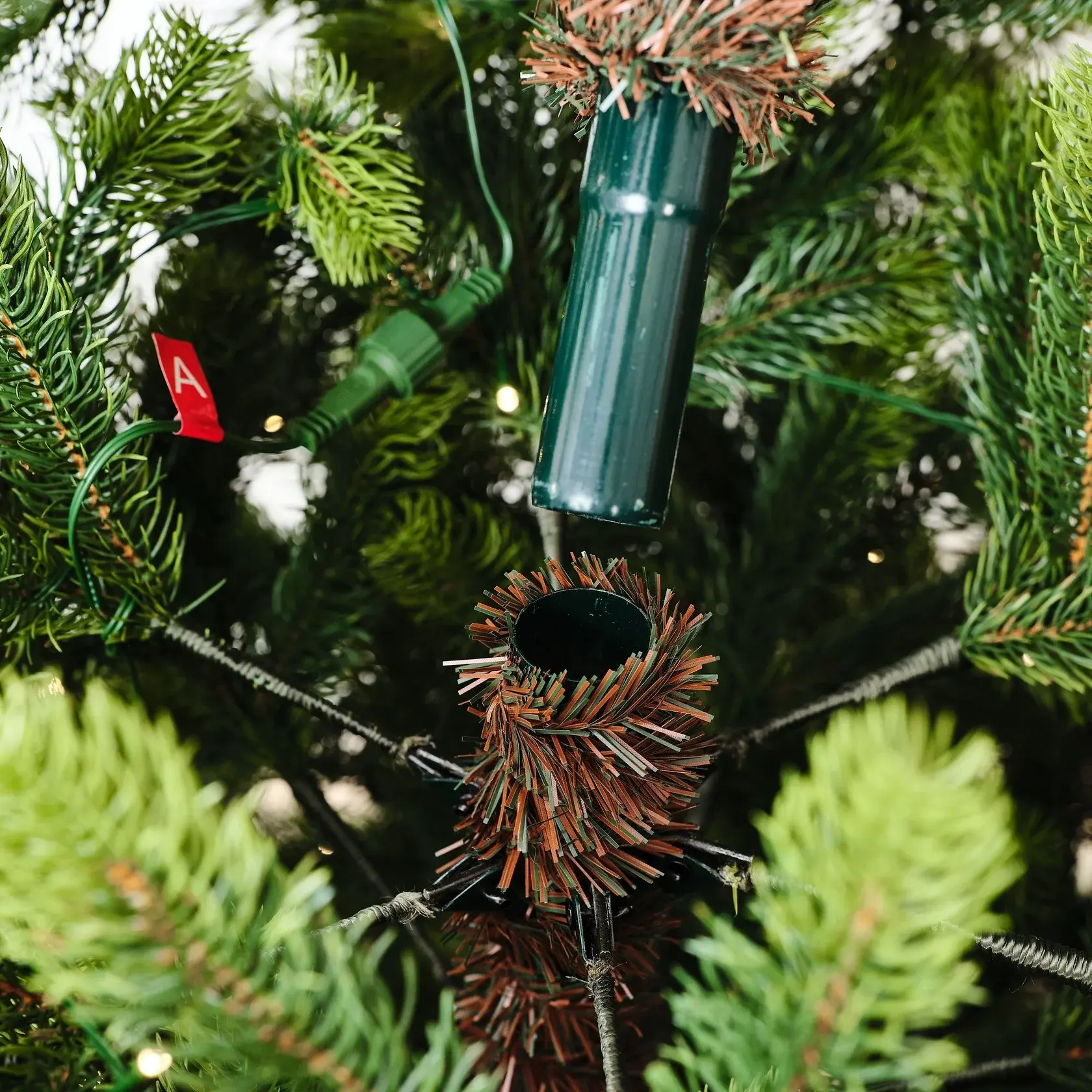 Ель оснащена шарнирной системой крепления веток, благодаря которой ветви автоматически расправляются при установке ёлки, делая процесс сборки быстрым и удобным. Вы получите густую и пышную ёлку за считаные минуты, которая выглядит идеально с любого ракурса.