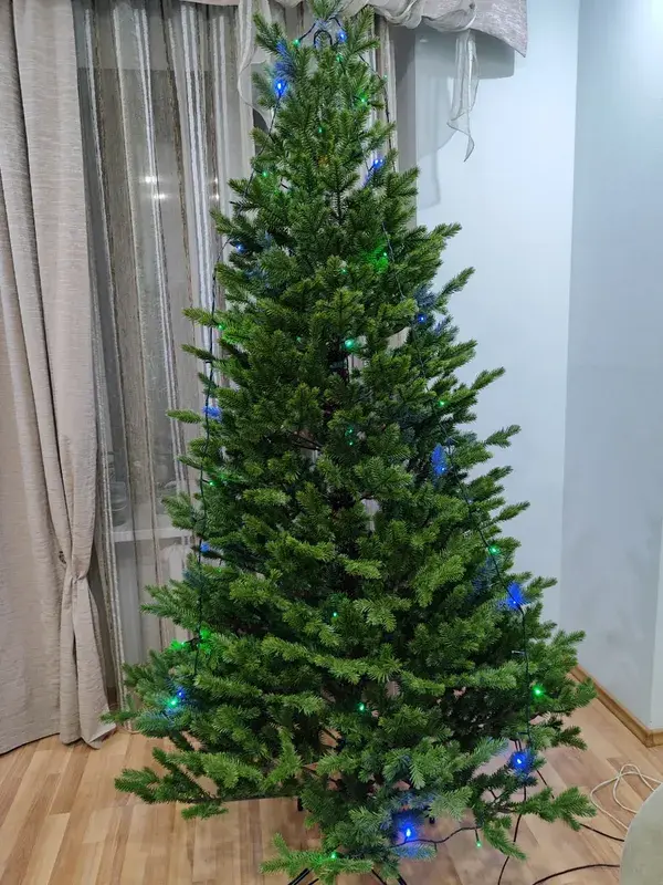 Отличительной чертой этой елки является наличие встроенной гирлянды 2в1. Она предлагает возможность выбора между теплым светом и яркими цветными лампочками. Более того, гирлянда оснащена различными режимами мерцания, которые можно легко переключать, что дает возможность адаптировать освещение в соответствии с вашим настроением или стилем праздника. Эта елка станет не только центром новогоднего декора, но и создаст атмосферу уюта и волшебства в вашем доме.