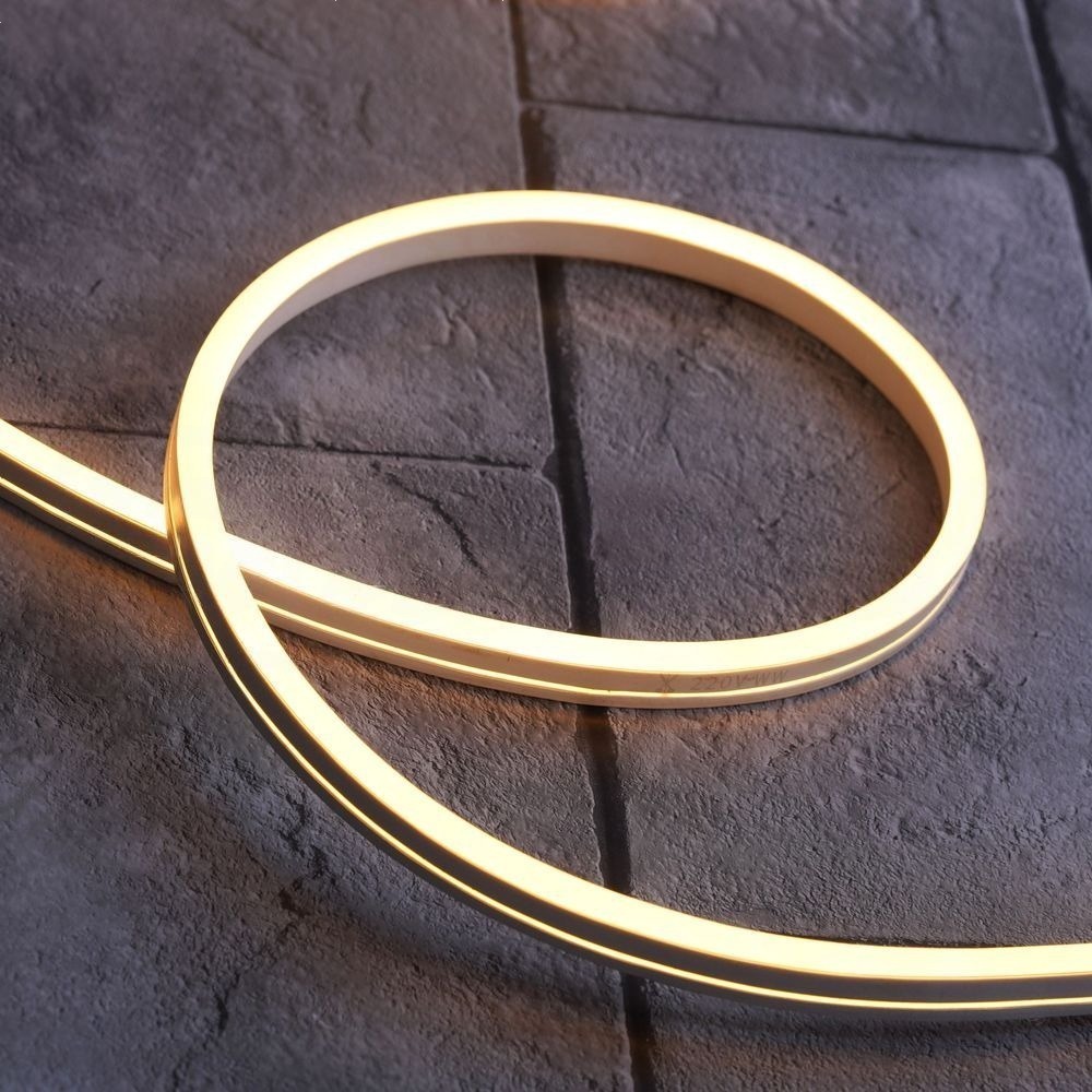 Лента широко используется в уличном освещении благодаря своей влагозащищенности, гибкости и долговечности. Ее применяют для подсветки фасадов зданий, выделения архитектурных элементов, декорирования витрин и создания контурного освещения. Широкий гибкий неон идеально подходит для украшения деревьев, арок, мостов и малых архитектурных форм, для создания ярких акцентов в рекламных конструкциях. Также он используется в световых вывесках и инсталляциях для праздничного оформления улиц, парков и площадей.