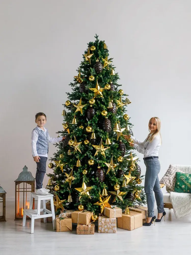 Новогодние игрушки больших размеров являются новогодним украшением для большой елки в помещении или для высокой елки на улице.
