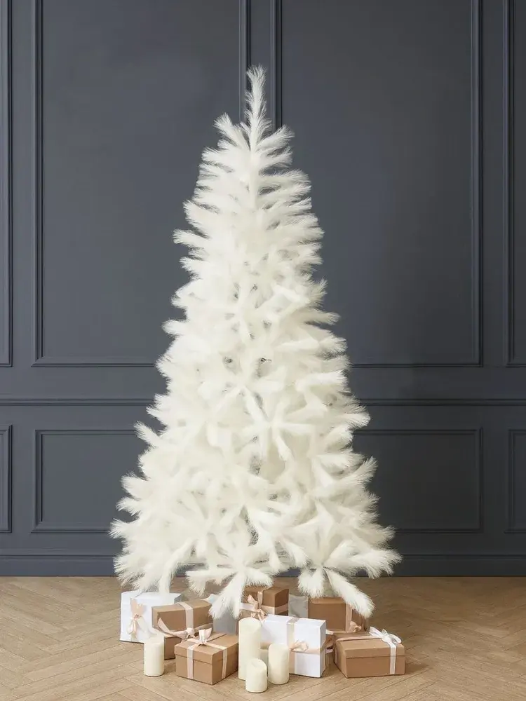 Елка White Charm (Белый шарм) которая словно создана из мечты. Ее хвоя выполнена из тонких ниточек, напоминающих нежные перышки, и окрашена в волшебный жемчужно-белый цвет. Этот уникальный дизайн не оставит равнодушным ни одного гостя. Силуэт елки широкий и пышный, добавляя пространству легкости и воздушности.