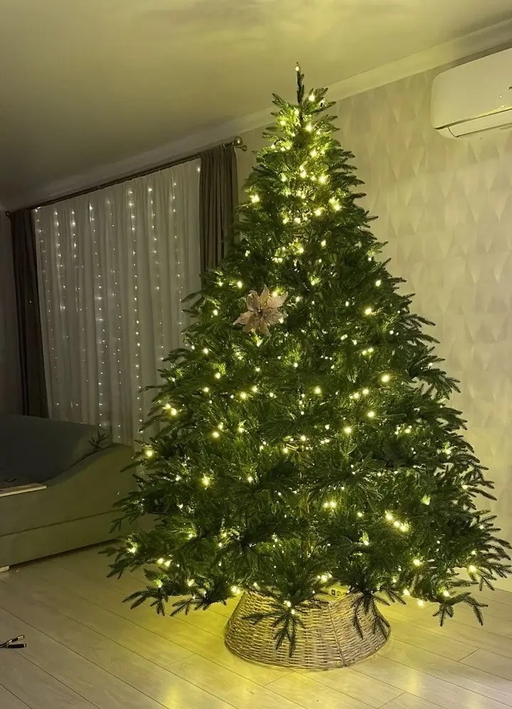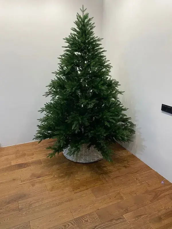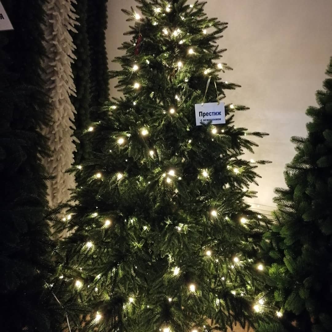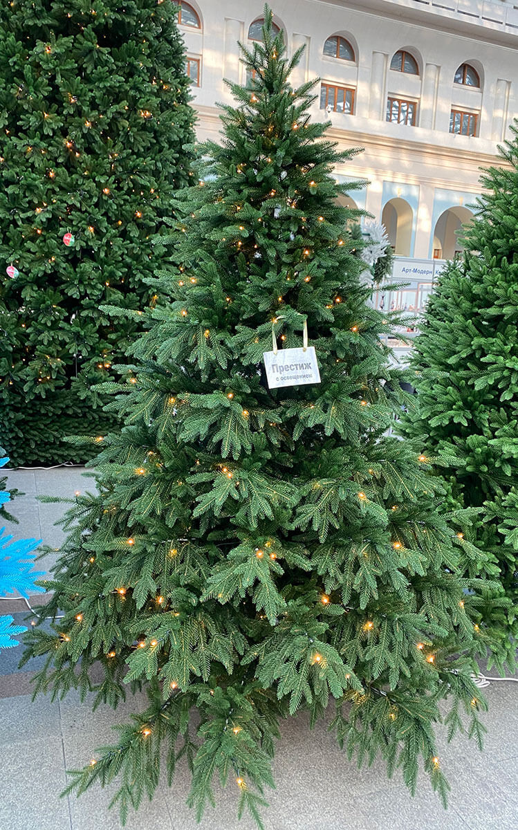 Обратите внимание на ель "Престиж" с встроенной гирляндой - для неё характерны слегка округлые формы, широкая юбка, пышная шуба из расположенных по радиусу ветвей, темно-зеленый цвет. Такое дерево достойно самых лучших украшений. Конструкция дерева – металлический стержень, полимерные хвойные лапы (литая хвоя) и металлическая крестовина, позволяют быстро установить и нарядить дерево. Несмотря на внушительные объемы, елочка очень устойчива, проста в установке, безопасна при использовании, потому что не представляет угрозы для здоровья, не горит, не пахнет