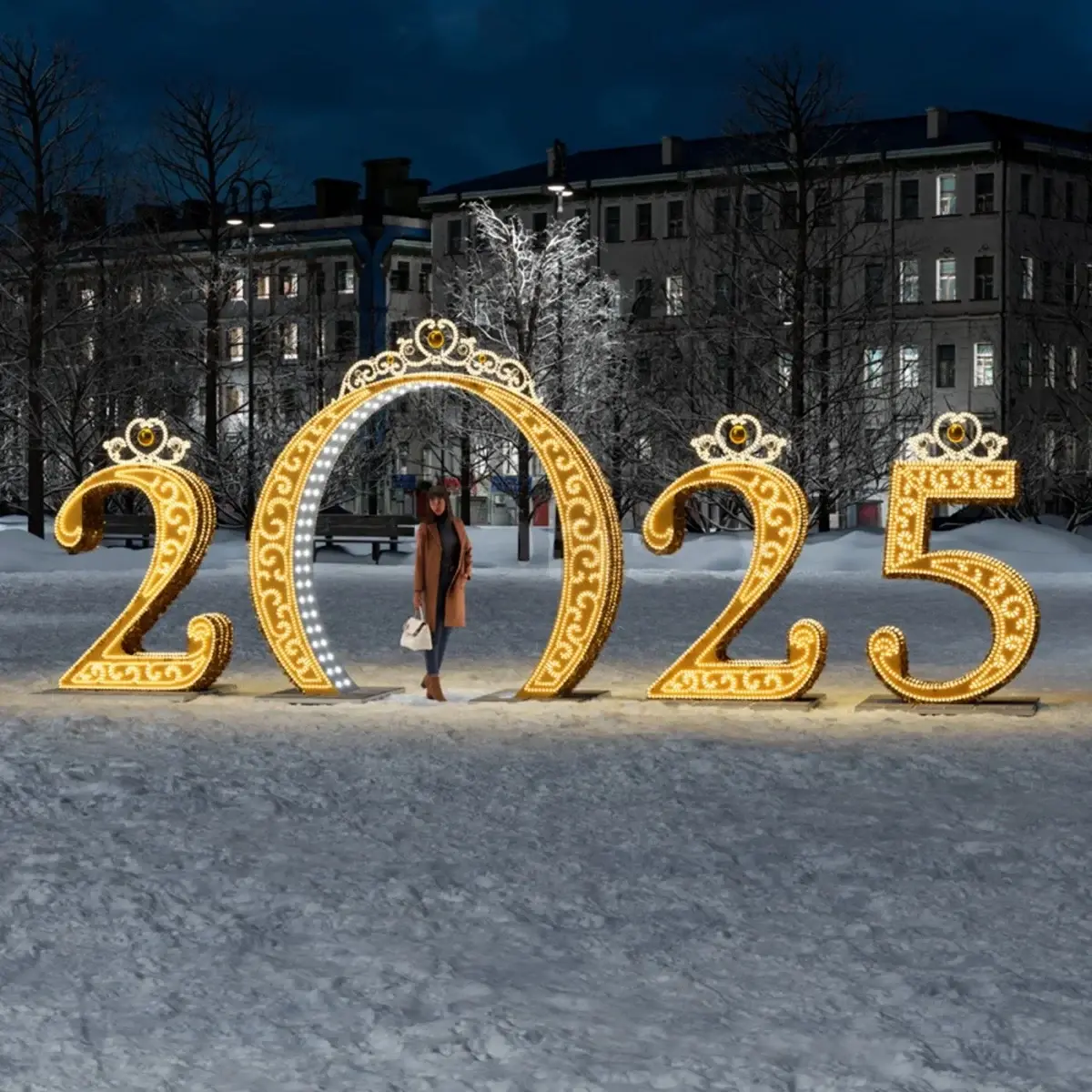 Светодиодные обьемные новогодние золотые цифры с узорами