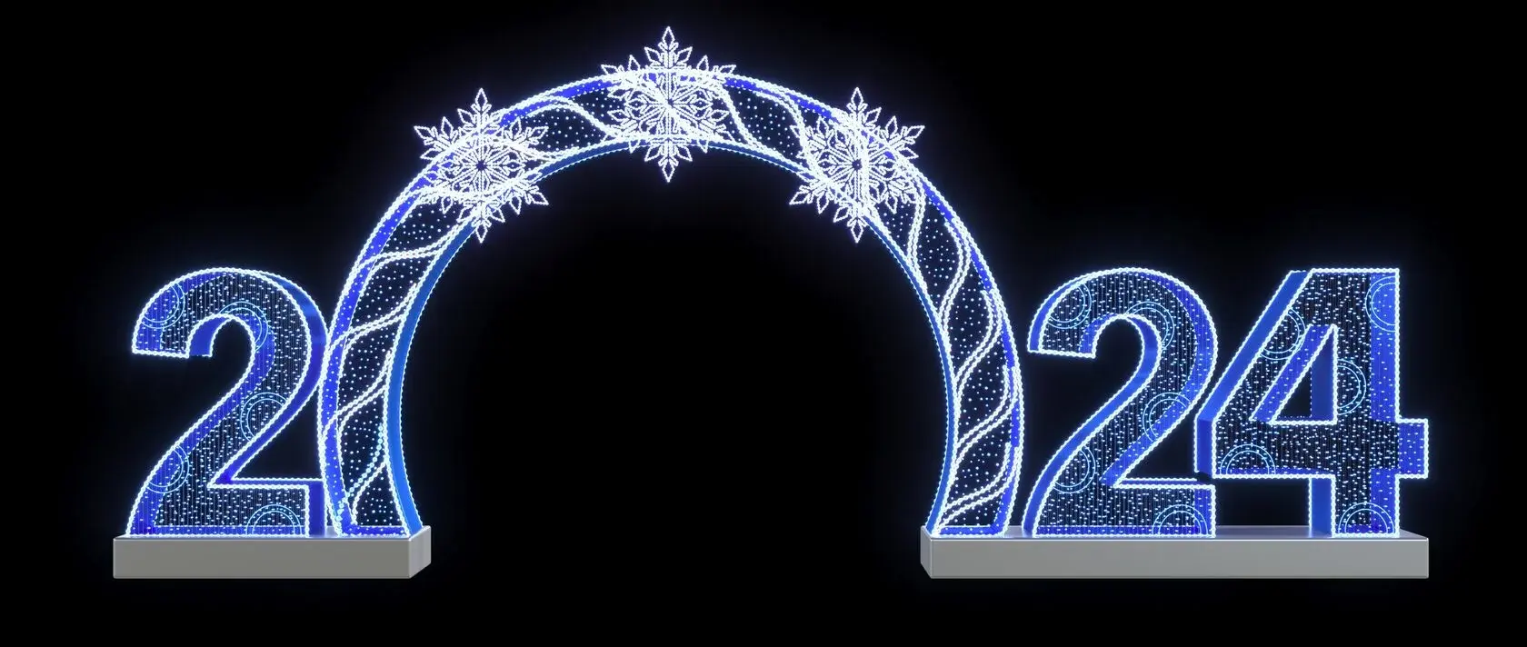 Уличная иллюминация со степенью защиты, не боится осадков. Каркас сварен из металлического сплава, он не ржавеет и хорошо блестит на солнце, что позволяет использовать изделия в любую погоду круглый год. Такая конструкция украсит улицы городов, привлечет внимание взрослых и детей и станет объектом для фотосессий.
