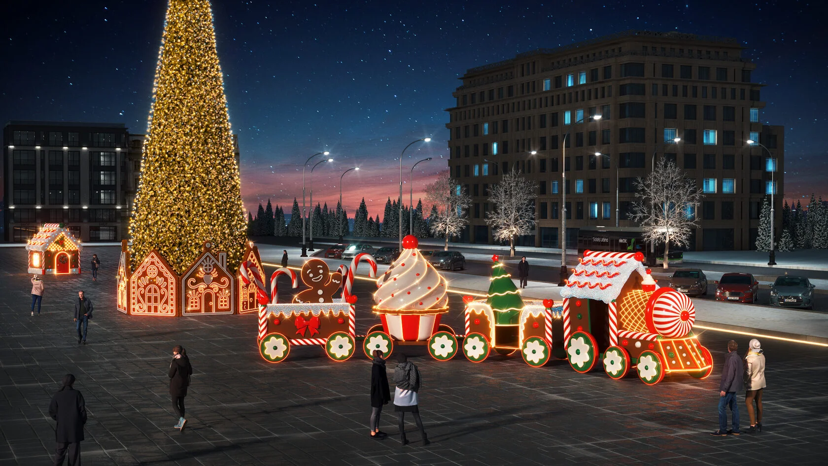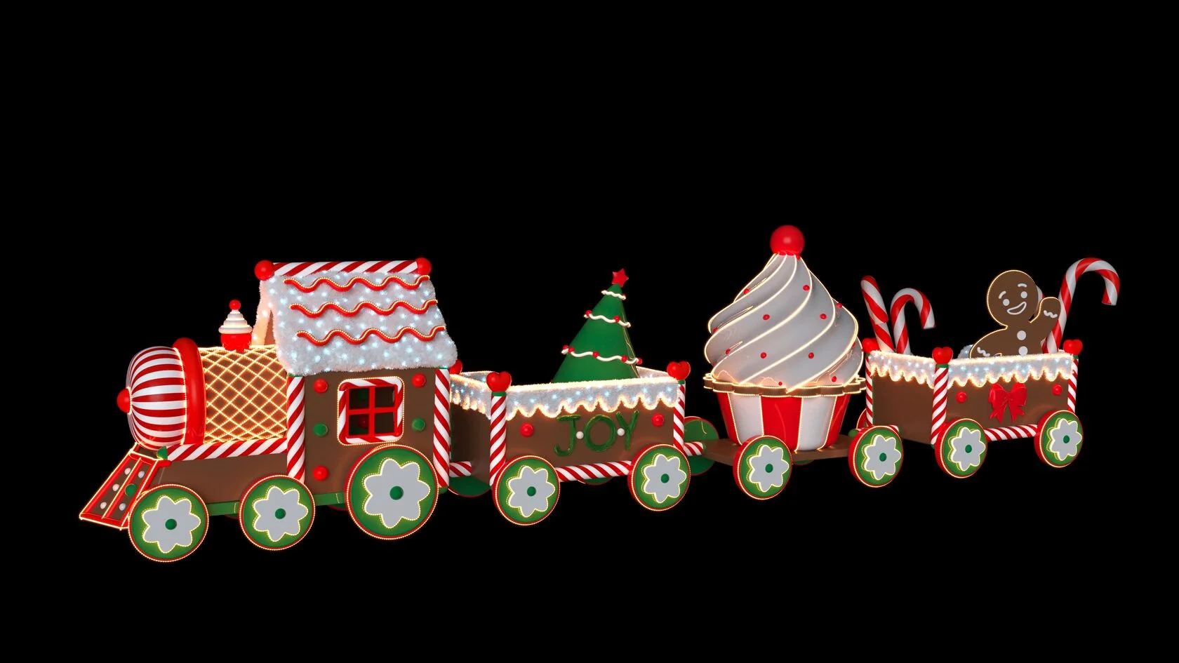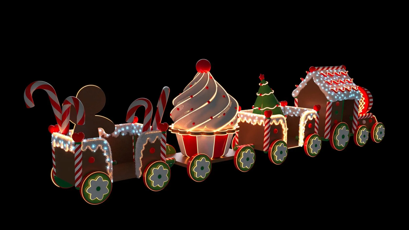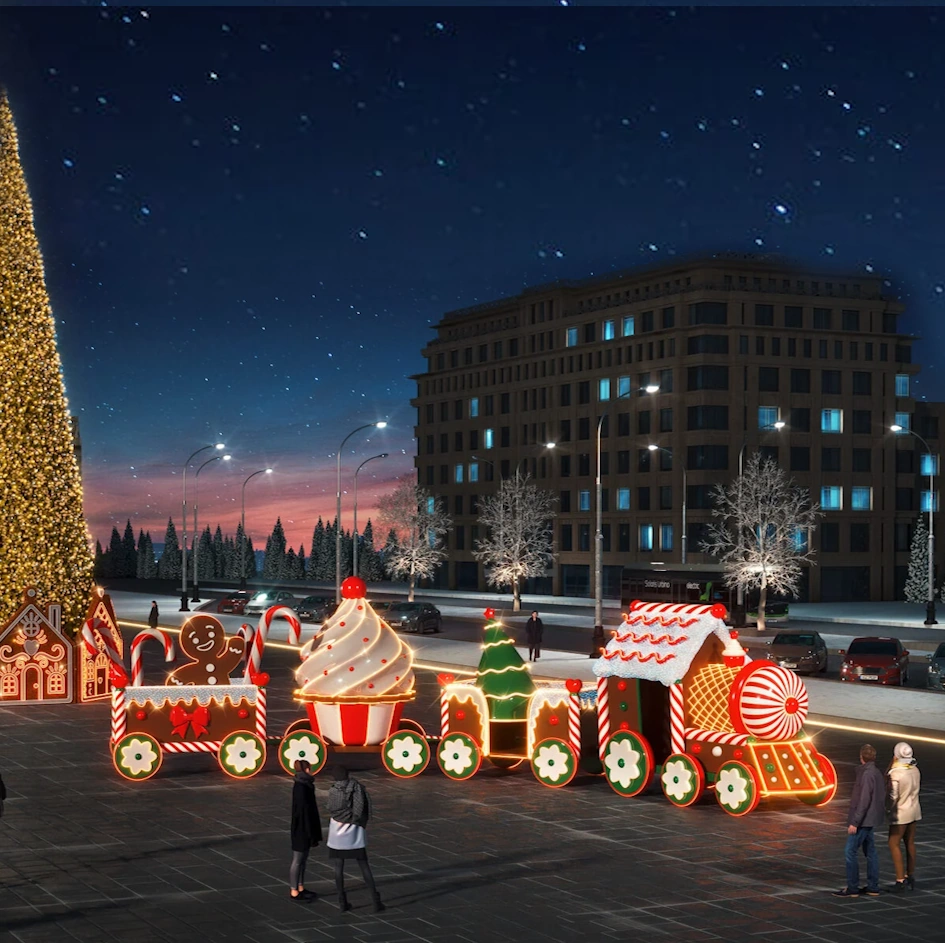 Новогодний паровоз со светодиодной подсветкой для украшения площадей и территорий Используется как для улицы так и для помещений.