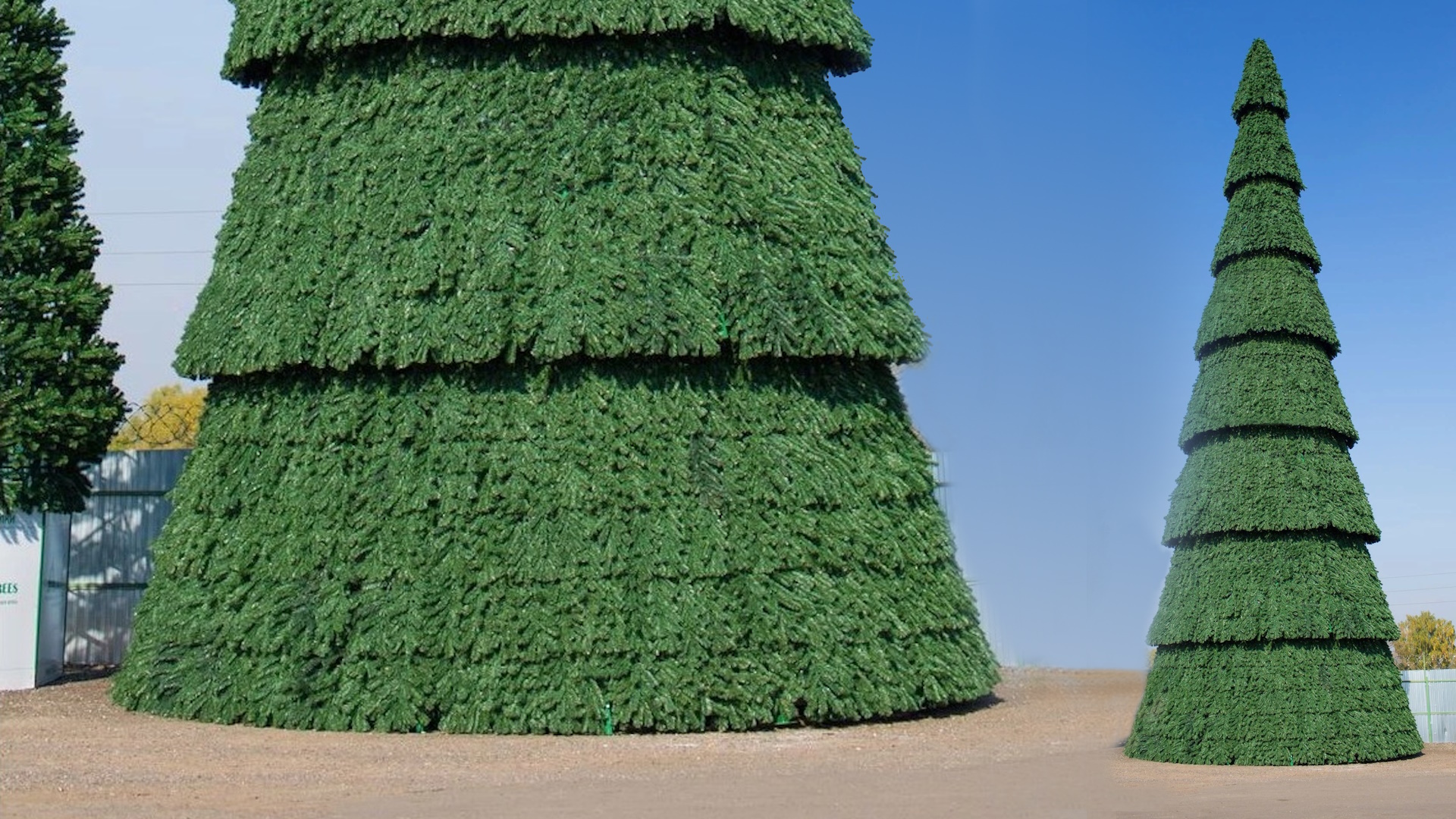 Опора, каркас и части «ярусов» выполнены из металлического сплава повышенной прочности. Сверху элементы покрыты стойким порошковым красителем, защищающим металл от коррозии. «Хвоя» изготавливается из ПВХ.