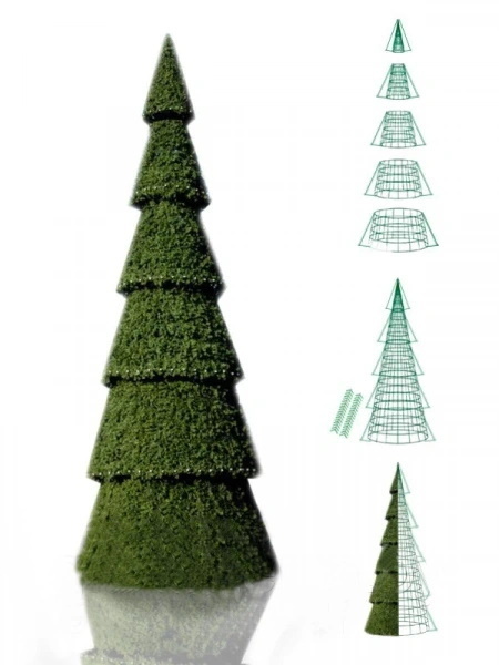 Опора, каркас и части «ярусов» выполнены из металлического сплава повышенной прочности. Сверху элементы покрыты стойким порошковым красителем, защищающим металл от коррозии. «Хвоя» изготавливается из ПВХ.