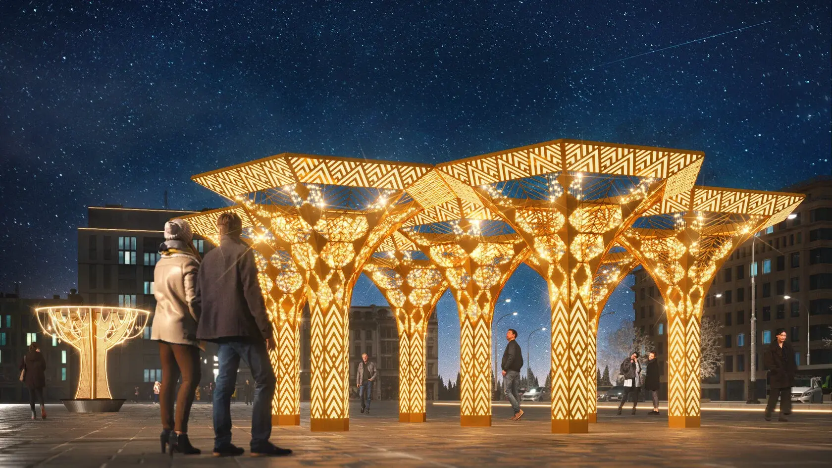 светящаяся конструкция светодиодное дерево с орнаментами - коллекция модерн