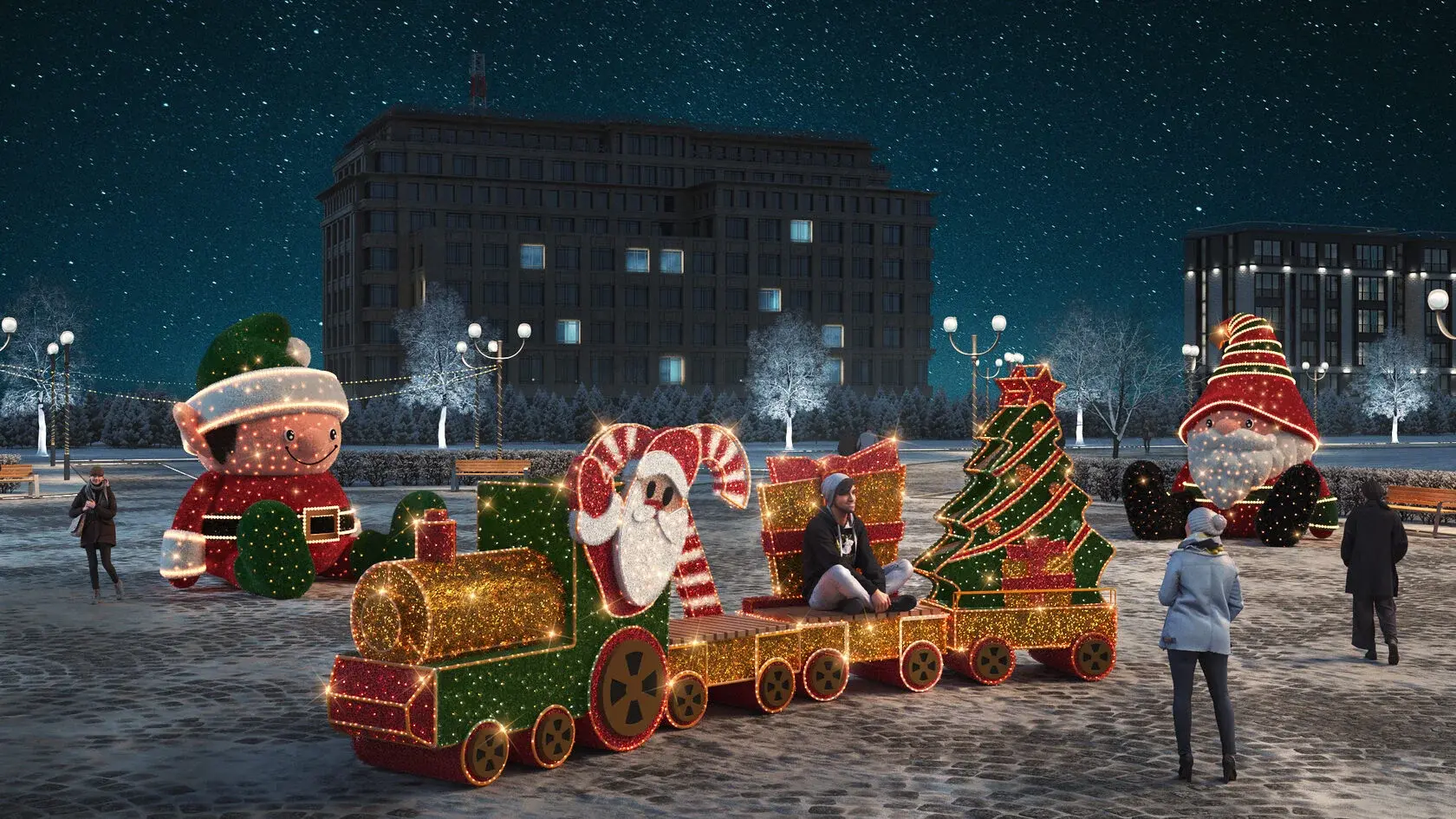 Паровоз "Рождественский" идеально подходит для установки на улице в любых климатических условиях и притягивают взгляды горожан и вызывают желание сфотографироваться.
