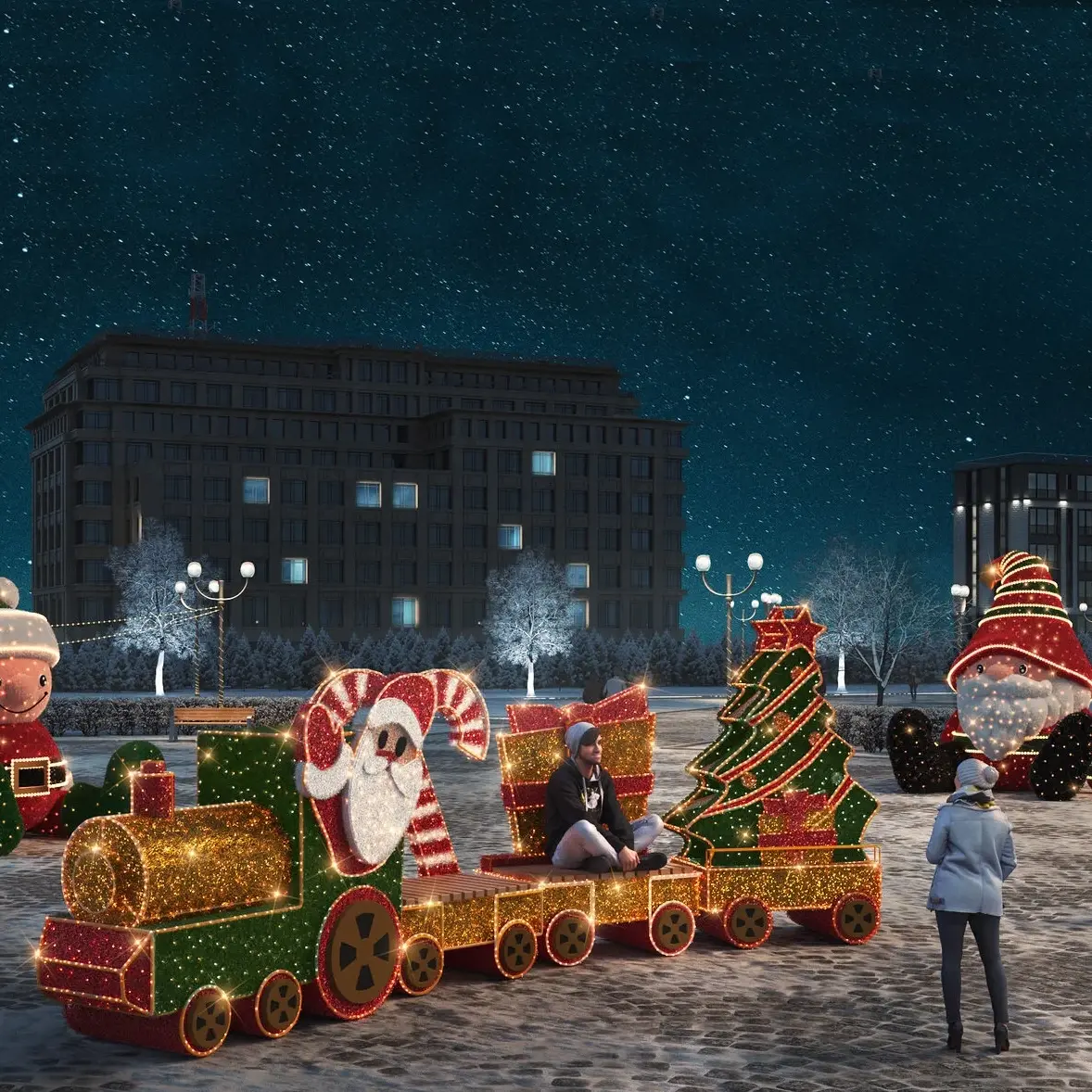 Рождественский паровоз со светодиодной подсветкой для украшения площадей и территорий. Используется как для улицы так и для помещений.