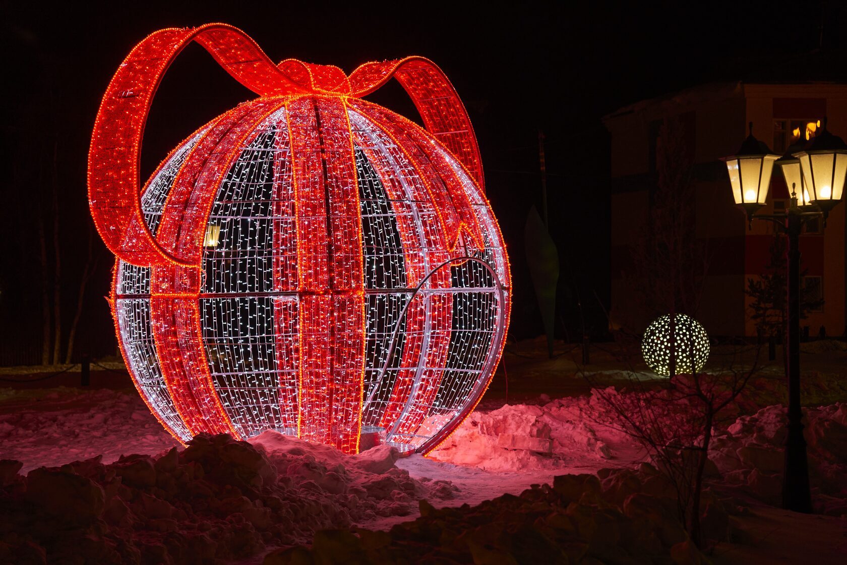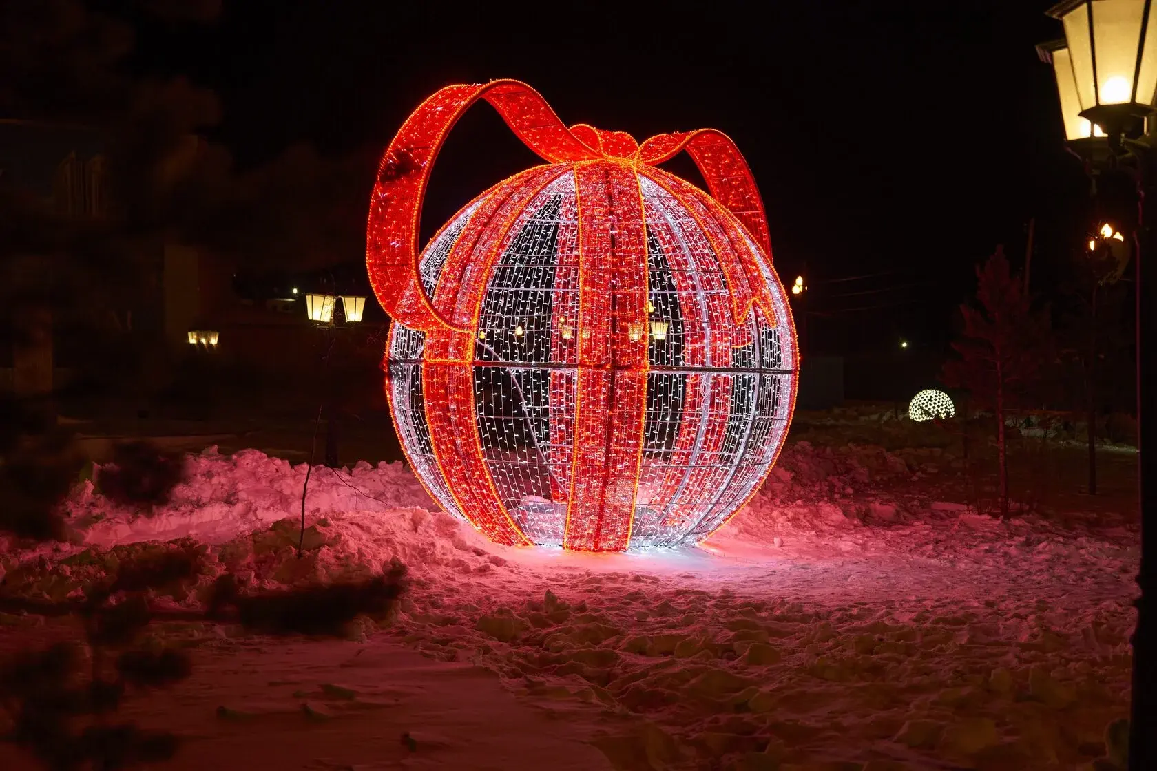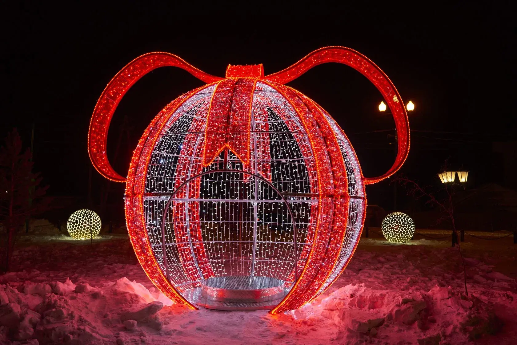 новогодний светящийся шар с бантом