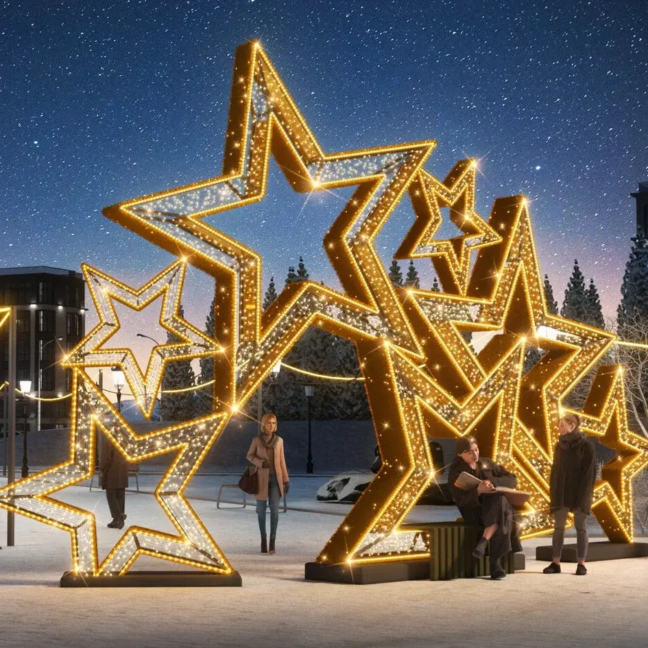 Большая световая инсталляция отлично подходит для установки на улице в любых климатических условиях. Изделия изготавливаются из прочных материалов. Притягивают взгляды горожан и вызывают желание сфотографироваться.