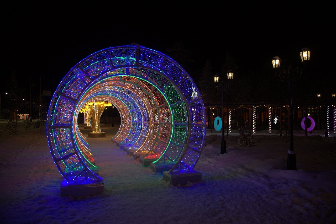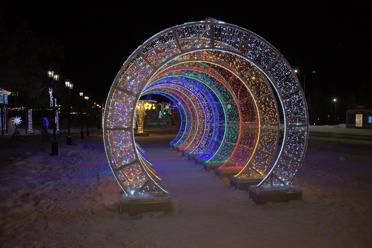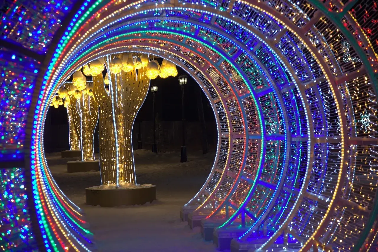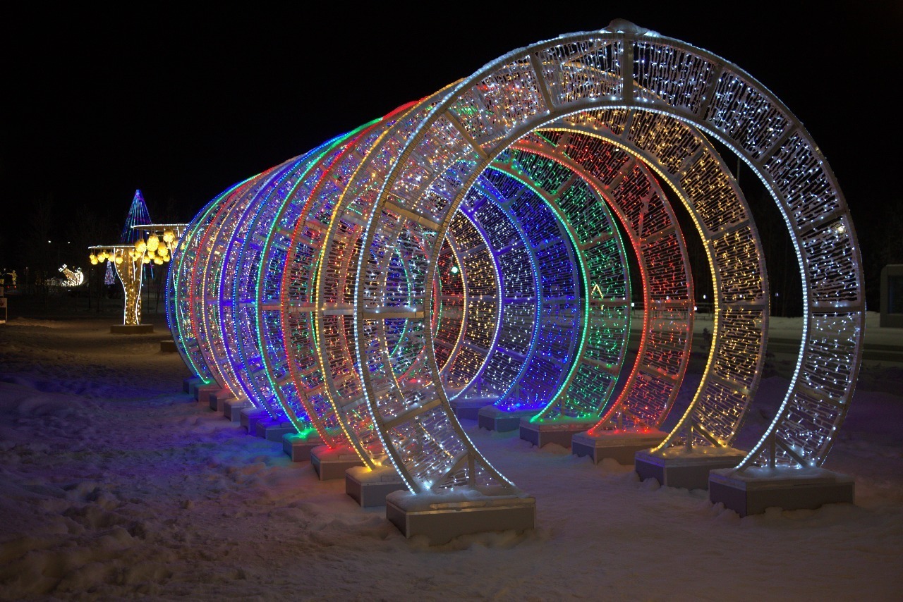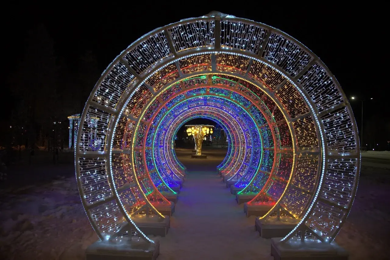 светящаяся конструкция-тоннель из цветных арок