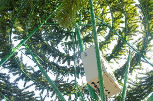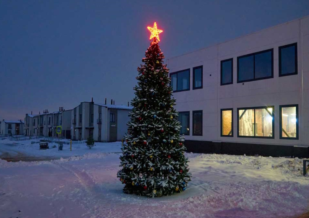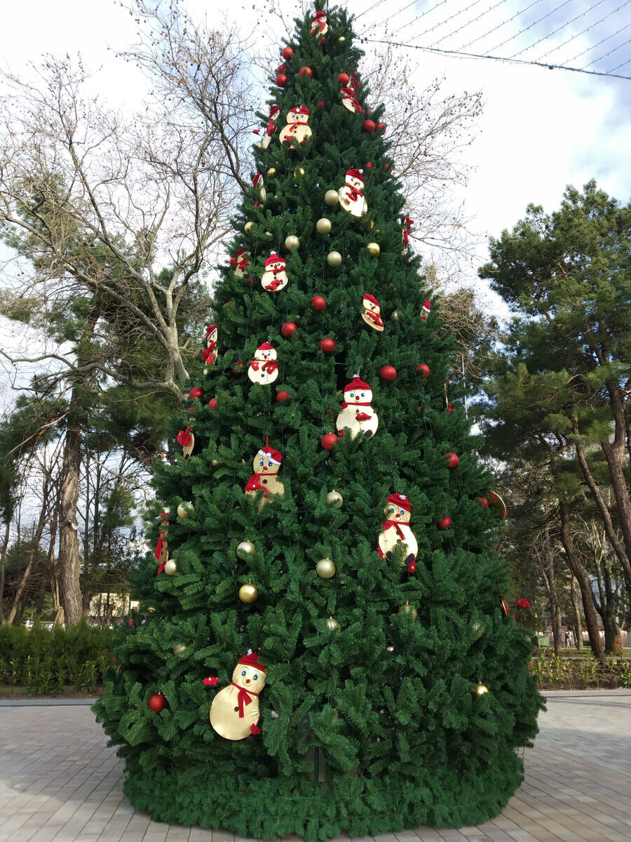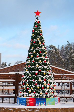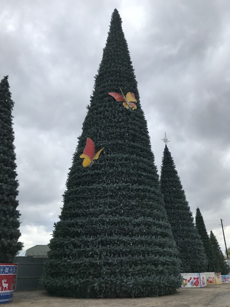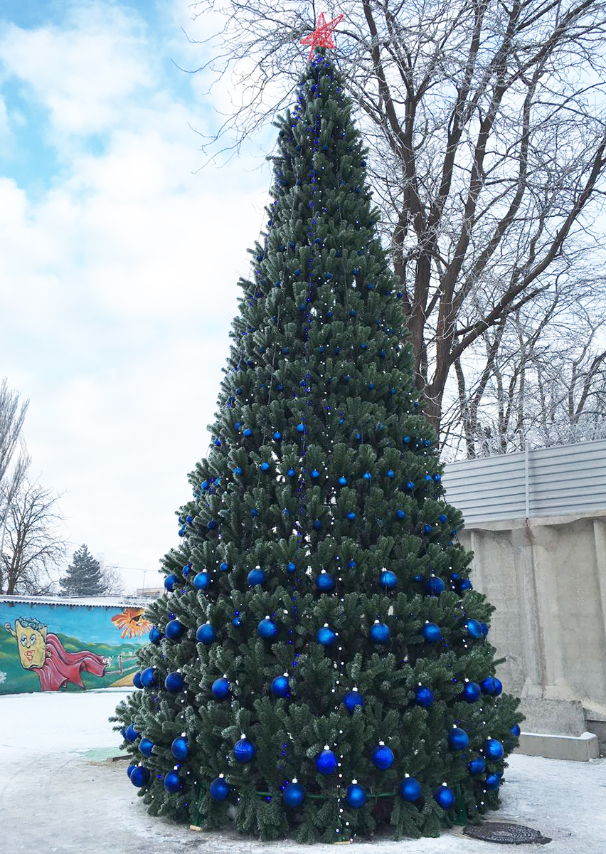 Каркасная уличная ель "Уральская" - изготавливается в виде конусообразного металлического каркаса по периметру которого устанавливаются кольцевые ярусы для крепления хвойных веток. Хвоя покрывает всю площадь поверхности от макушки до основания. Каркасные елки наиболее устойчивы к порывам ветра и непогоде.