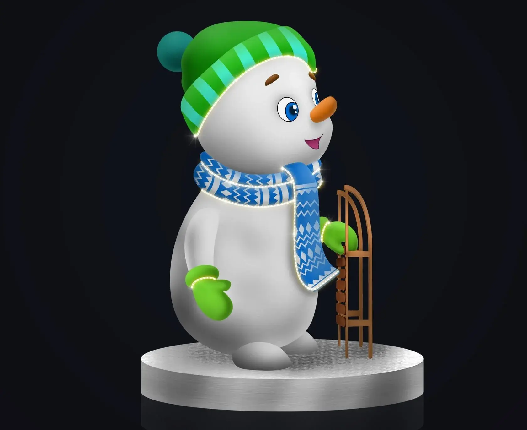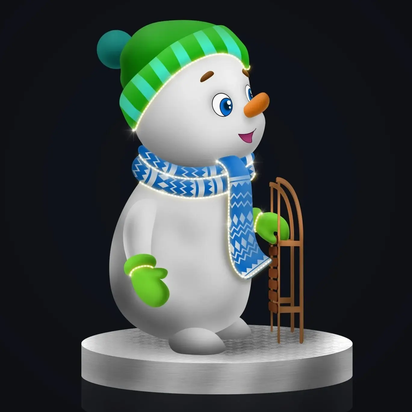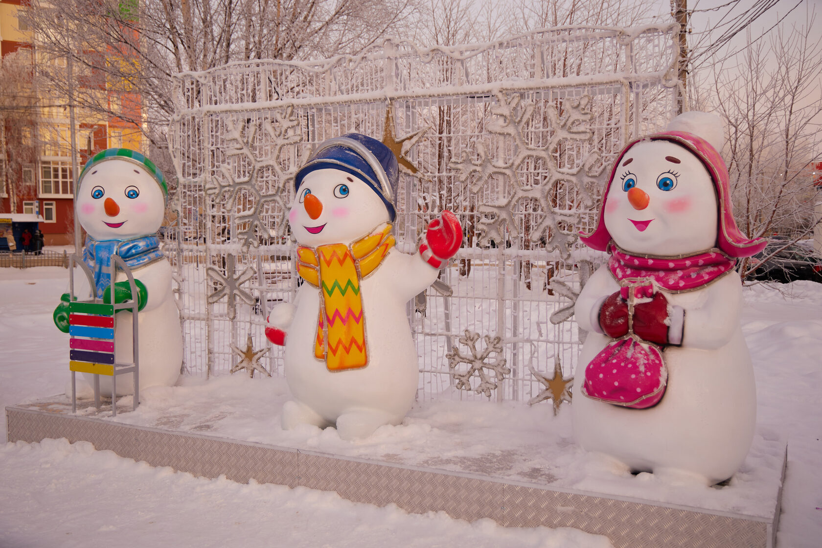 большая фигура "снеговик с санками"