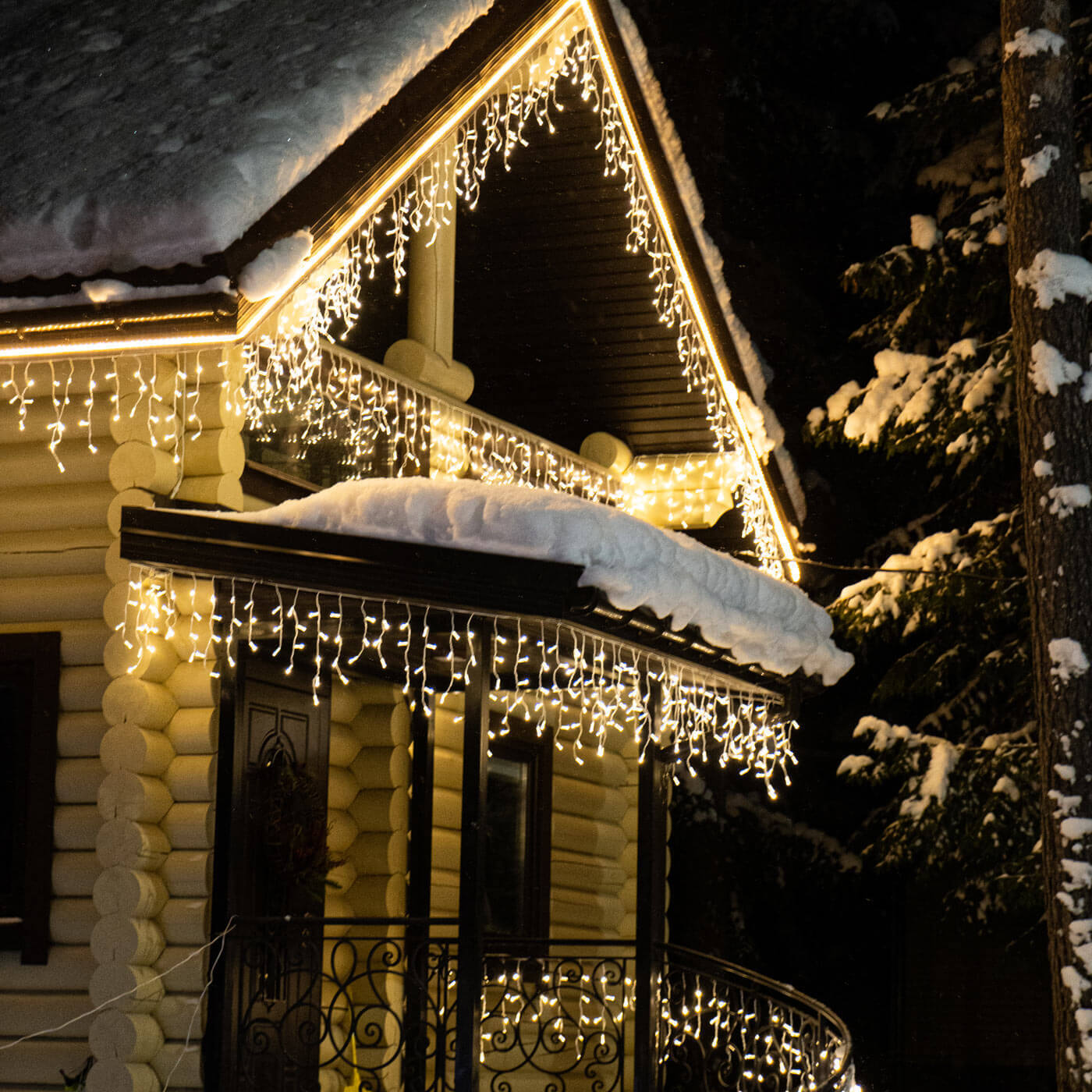 Светодиодная гирлянда Бахрома (Айсикл) идеально подойдет для декоративной иллюминации фасадов зданий и домов. Она эффектно украсит карниз коттеджа или балкон, беседку в саду или окна магазина. Надежный провод со степенью защиты обеспечит стабильную работу в дождь или зимнее время года.