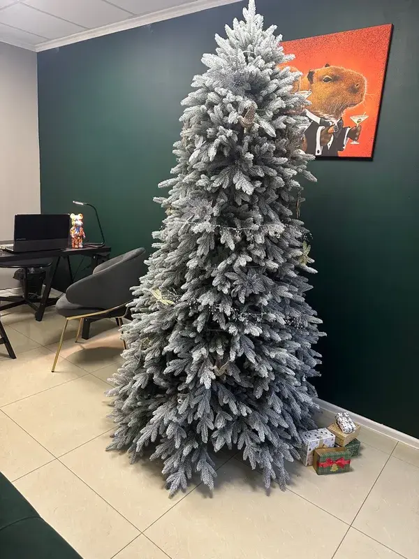 Идеально заснеженные иголки создают зимнюю атмосферу и приятную ауру праздника. Напольная модель позволяет поставить её в любое удобное место вашего дома или офиса. Она очень легка в сборке и не требует специальных инструментов.