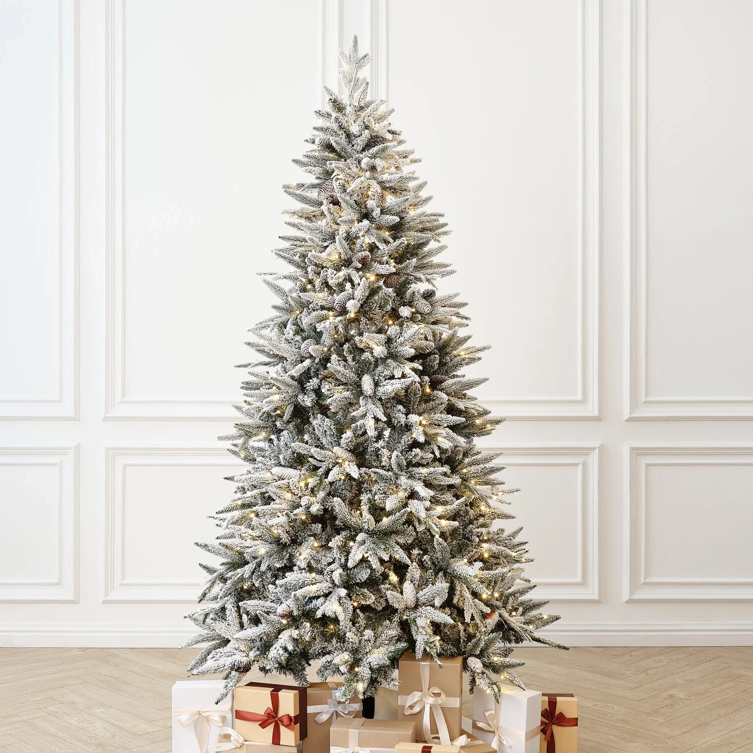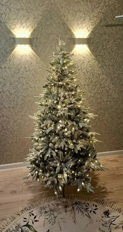 Искусственная заснеженная елка Ile Grande (Иль Гранде) - премиальная новогодняя ель со встроенной мощной подсветкой теплого света, имеющая правильный силуэт, натуральные шишки и живой вид заснеженной хвои, словно усыпана настоящим снегом в лесу. Даже без украшения елка выглядит сказочно за счет заснеженной хвои и встроенной подсветки.