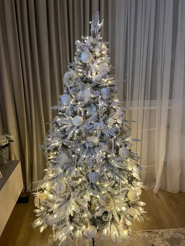 Ель экологичная и изготовлена из пожаробезопасных материалов, снег представляет собой искусственный хлопок (флок), нанесенный на производстве, не имеет запаха и не осыпается. Подсветка выполнена мощными диодами теплого света, как на витринах Европы в Рождество.