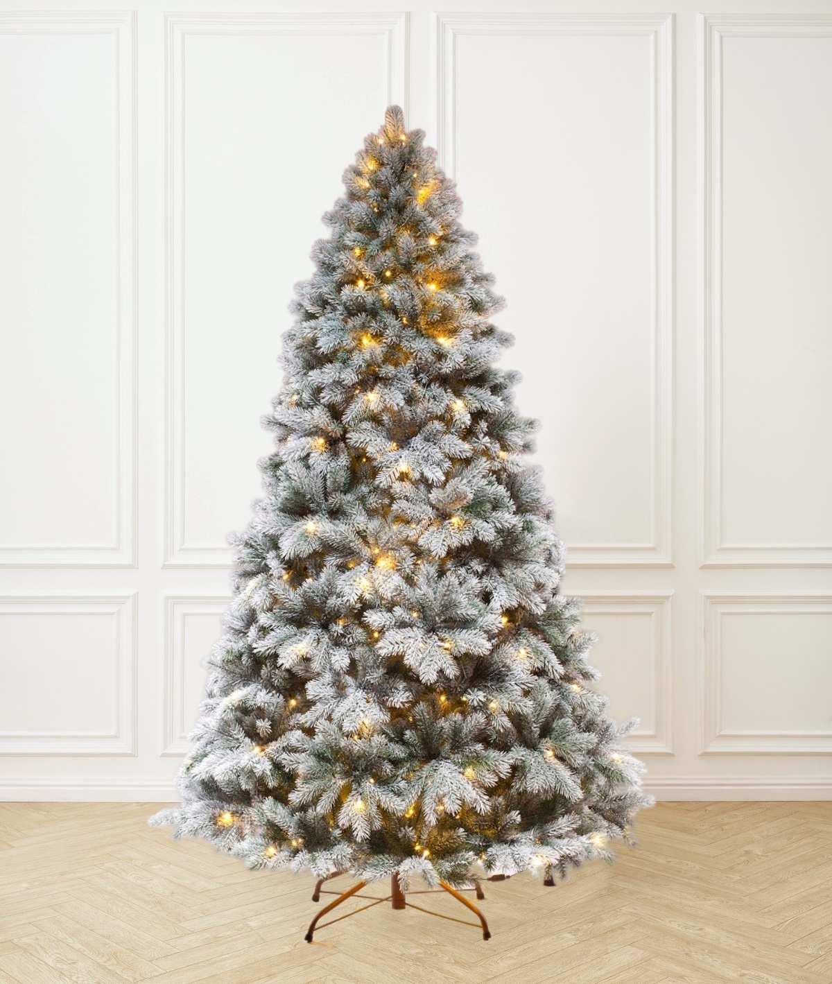Заснеженная елка с гирляндой встроенной «Летиция» (Литая хвоя) 180 см / 1,8 м