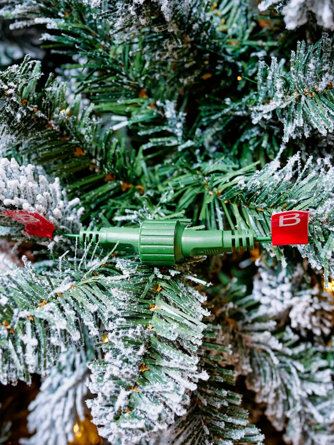Ель экологичная и изготовлена из пожаробезопасных материалов, снег представляет собой искусственный хлопок (флок), нанесенный на производстве, не имеет запаха и не осыпается. Подсветка выполнена мощными диодами теплого света, как на витринах Европы в Рождество.