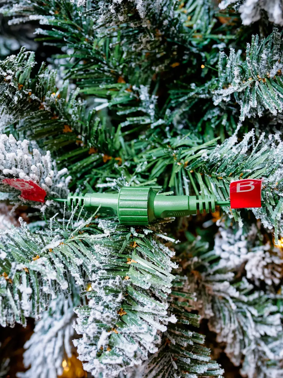 Ель экологичная и изготовлена из пожаробезопасных материалов, снег представляет собой искусственный хлопок (флок), нанесенный на производстве, не имеет запаха и не осыпается. Подсветка выполнена мощными диодами теплого света, как на витринах Европы в Рождество.